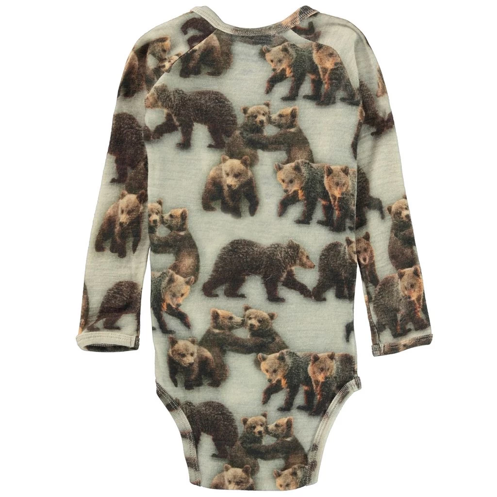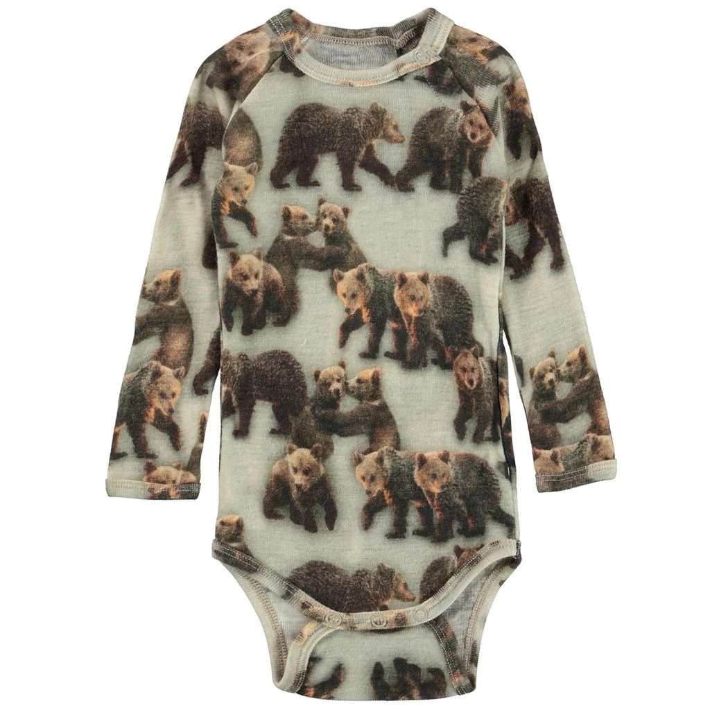 This wool baby body is a stylish first choice for cold days. Farai wool baby body by Molo. The wool baby body has a snap button closure at the shoulder and between the legs.