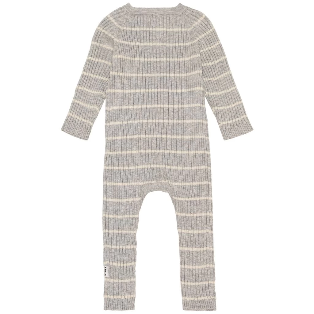 Let your baby explore and play in comfort. Gray Farley one-piece by Molo. The one-piece has a ribbed design. It has a button closure at the front.