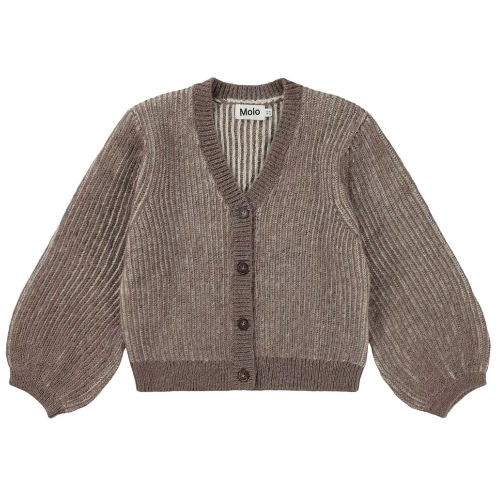 Enjoy the stylish design and soft knitted feel. Grey Gia cardigan by Molo. The cardigan has a knitted design. It has a button closure at the front and ribbed cuffs.
