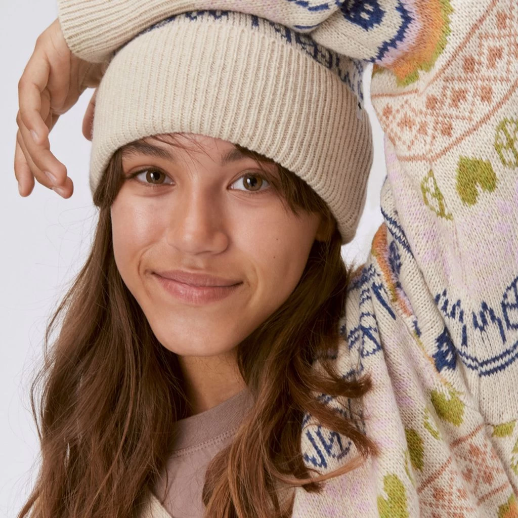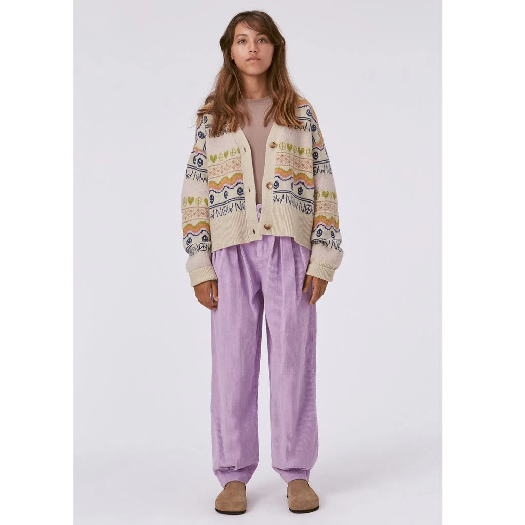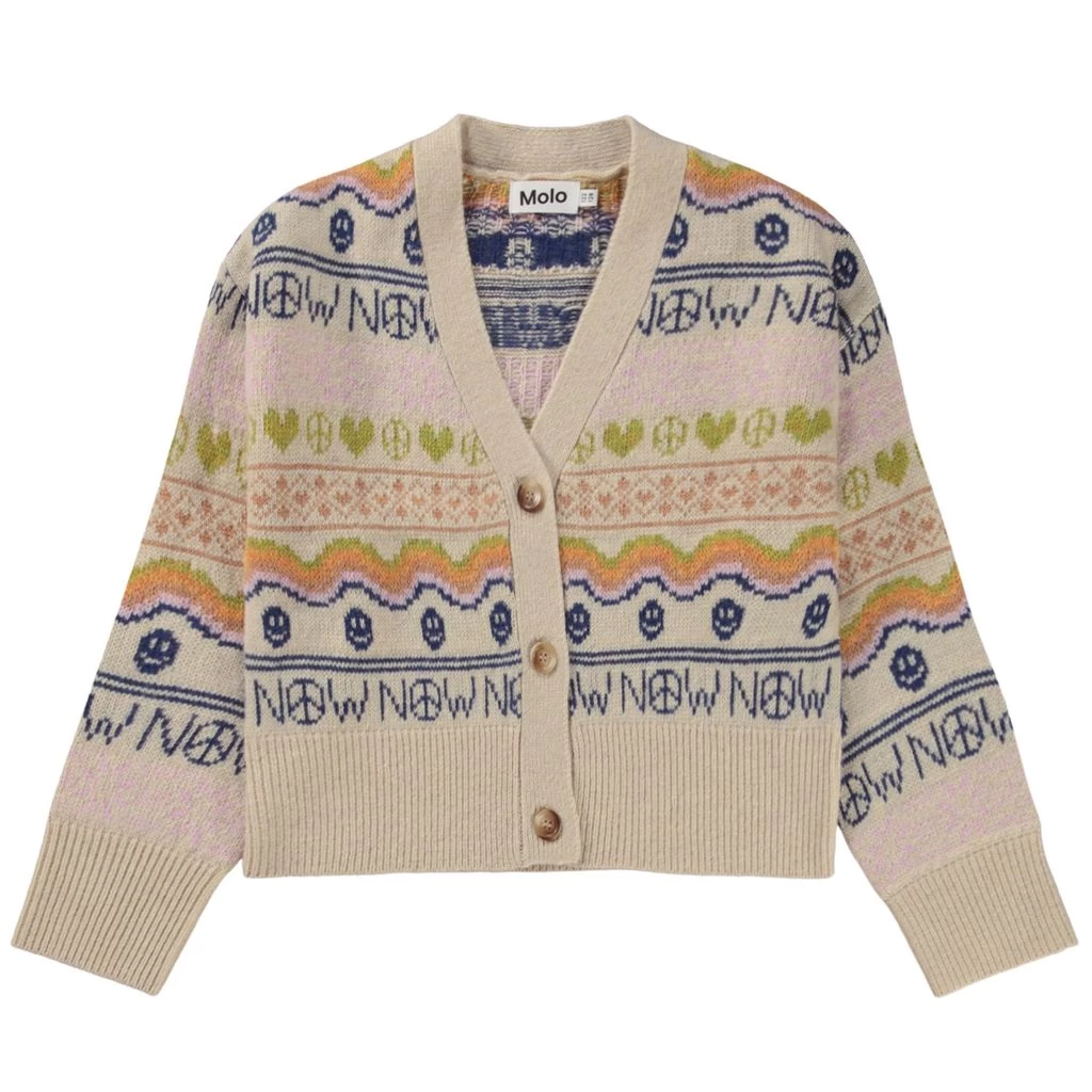 A soft cardigan with a striking new design. Beige Gilly cardigan by Molo. The cardigan has a loose fit. It has a knitted design, a button closure at the front and rib-knit cuffs.
