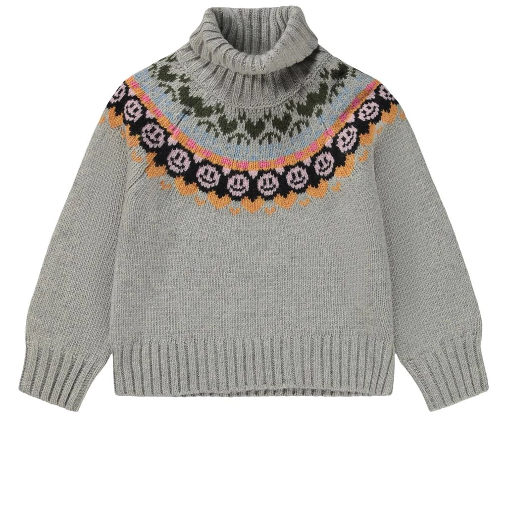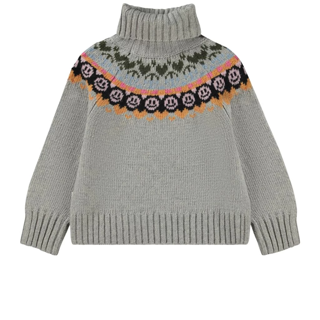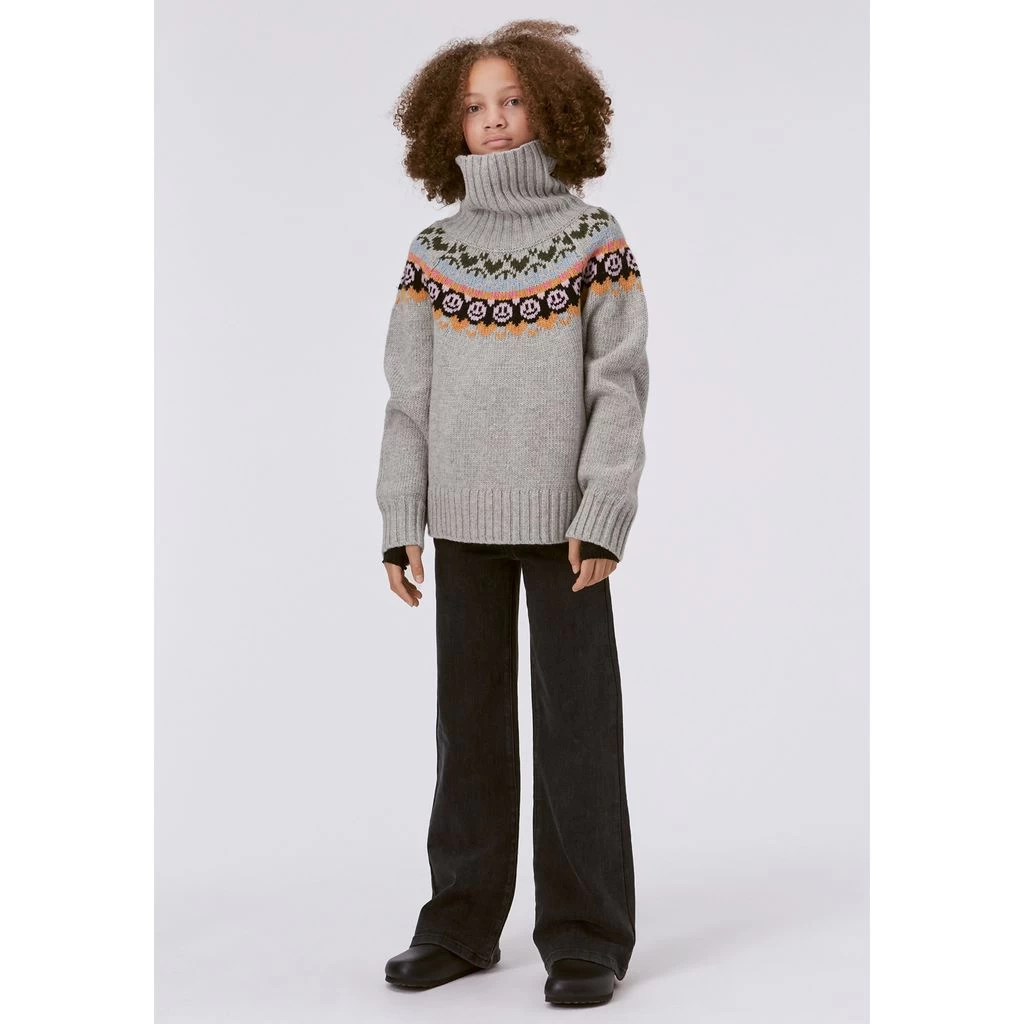 Enjoy the stylish design and soft knitted feel. Grey Gimla jumper by Molo. The jumper has a knitted design. It has a relaxed fit, a rib-knit turtleneck and rib-knit cuffs.