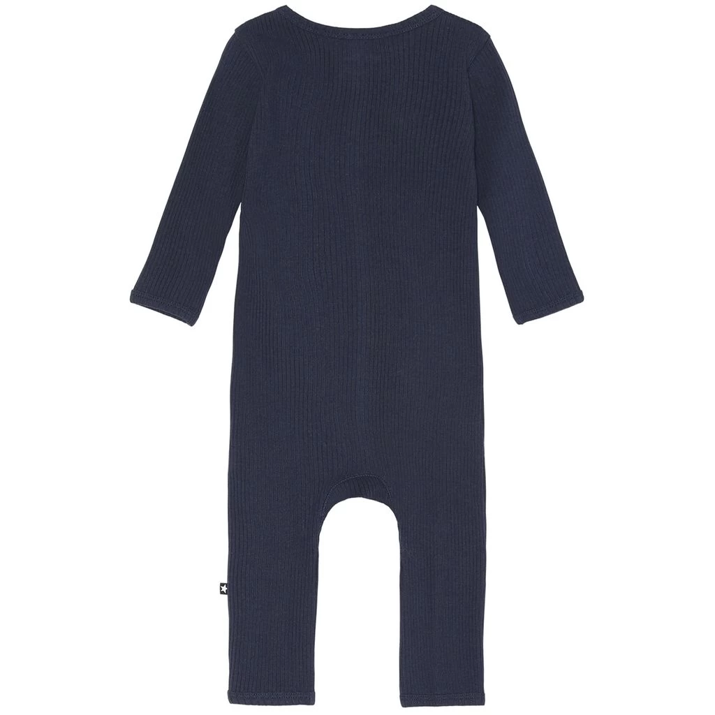 Treat your baby with a new favorite body. Navy Fellow baby body by Molo. The baby body has a ribbed design. It has a snap button closure on the side.