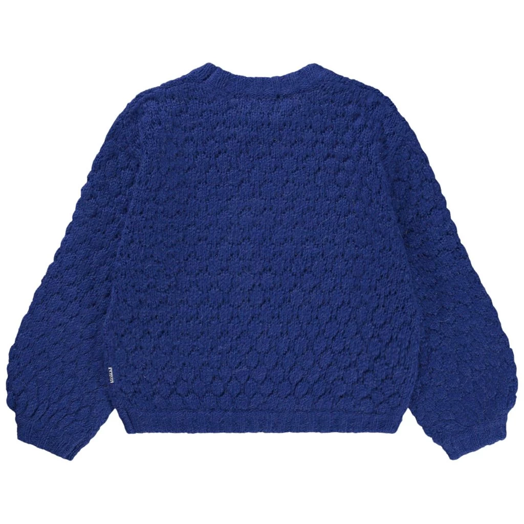 Enjoy the stylish design and soft knitted feel. Blue Gulia jumper by Molo. The jumper has a knitted design. It has rib-knit cuffs.