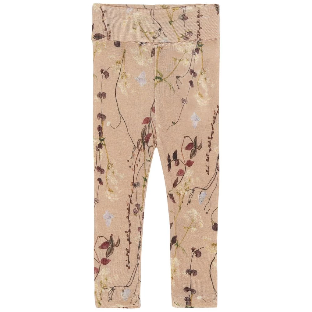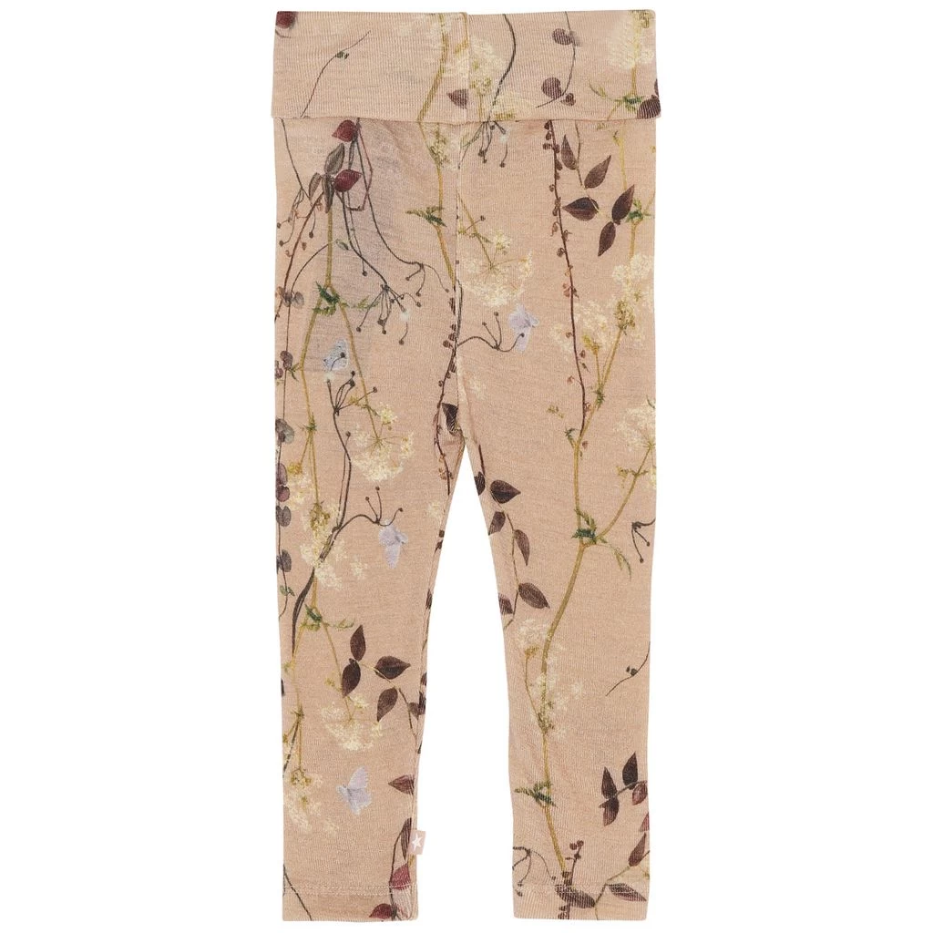 Be warm and comfy on winter adventures. Beige Sabi wool pants by Molo. The wool pants have a wide elasticated waist. They have a slim fit.