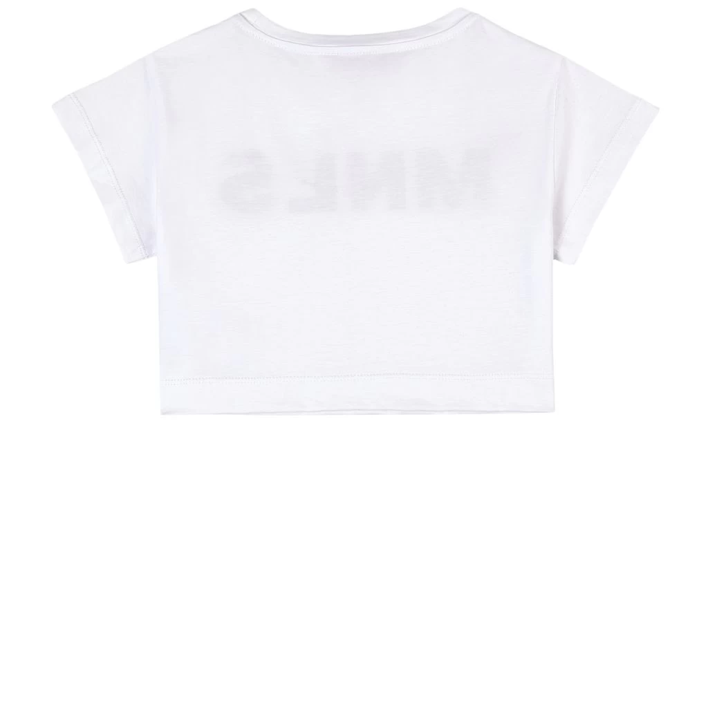 White Logo Crop T-Shirt by Monnalisa. The T-Shirt is made in Italy and has a cropped design.