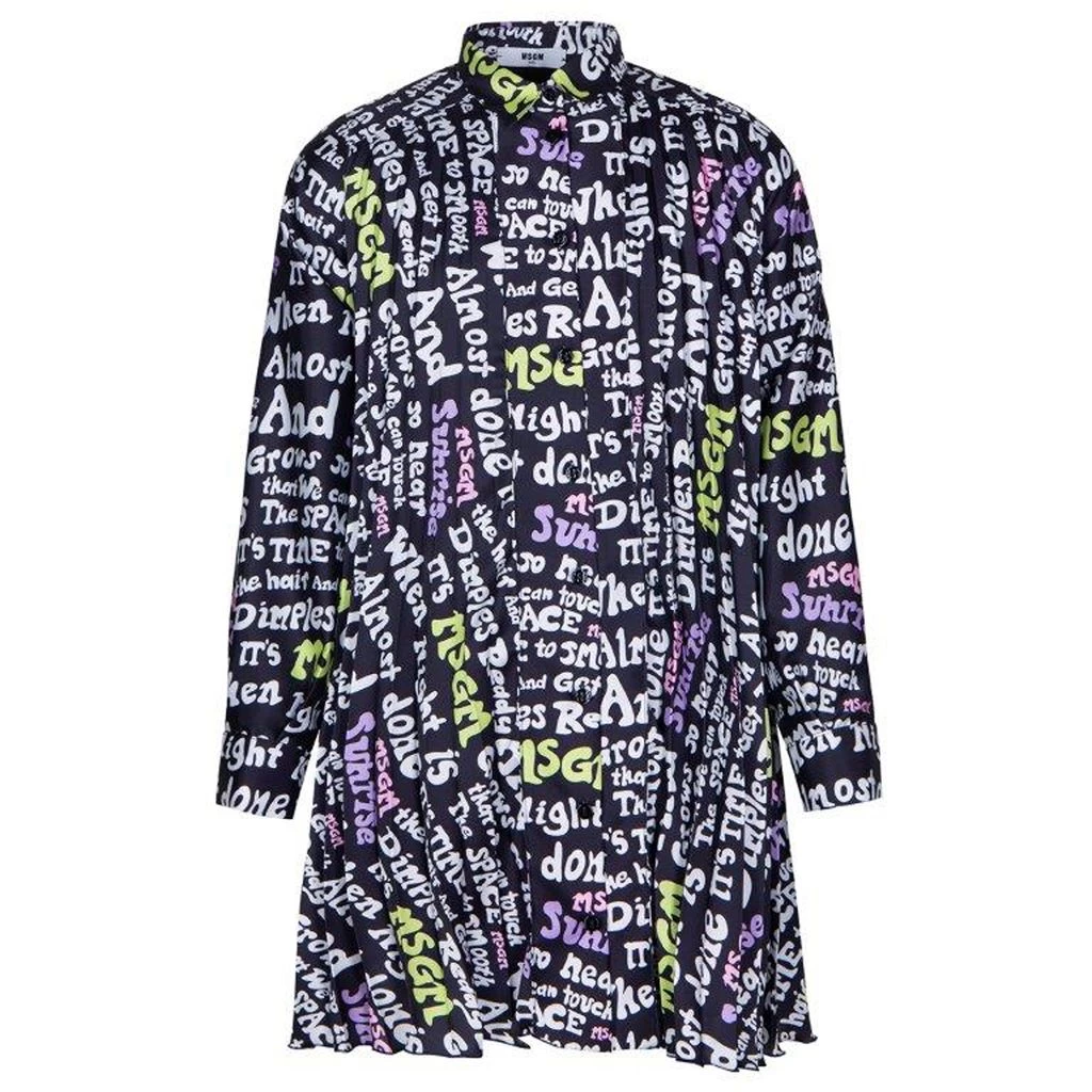 A dress for every occasion. Black dress by MSGM. The dress has a pleated design. It has soft lining, an A-line silhouette and a button closure at the front.