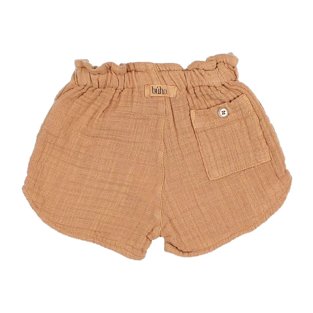 Perfect for those sunny days. Brown Muslin shorts by bΓΊho. The shorts have an elasticated waist. They have a back pocket.