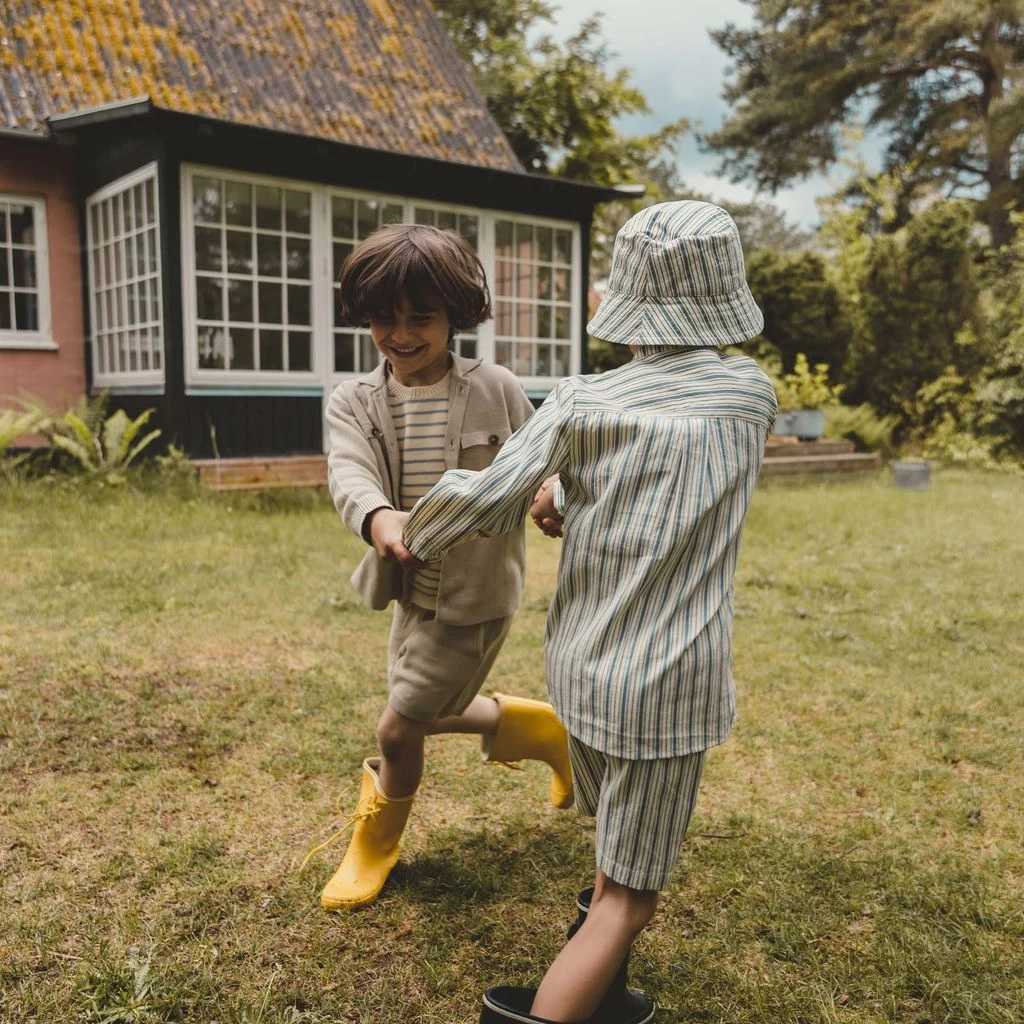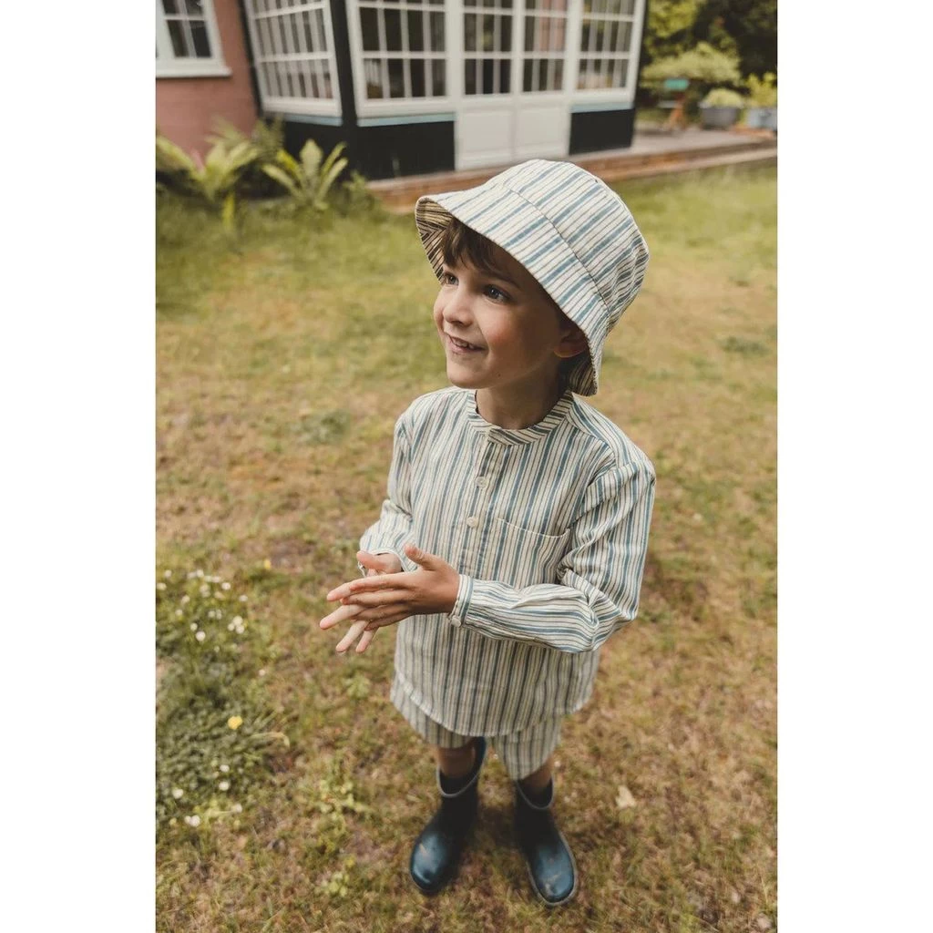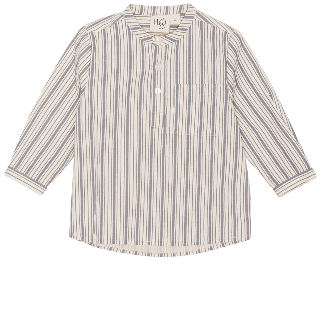 A shirt to make your day. Blue Nori shirt by Flöss. The shirt has a mandarin collar. It has a button closure at the back and a chest pocket.