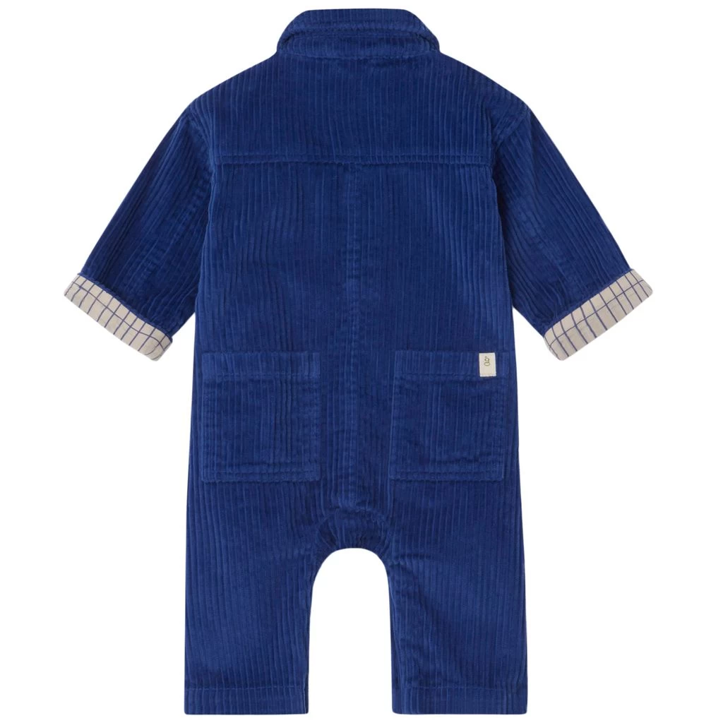 Your little one can play all day in comfort. Blue onesie by Garbo&Friends. The onesie has a corduroy design. It has a button closure at the front and snap buttons between the legs.