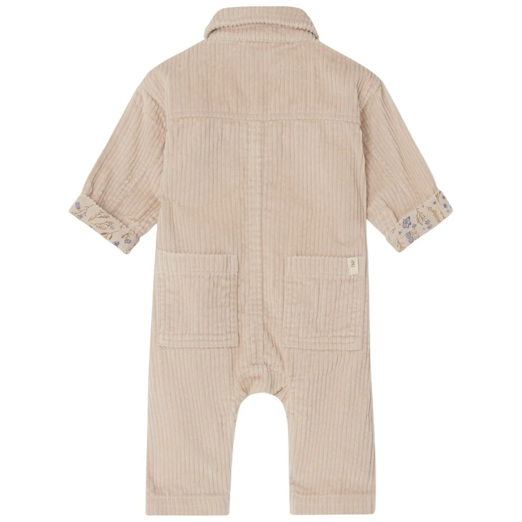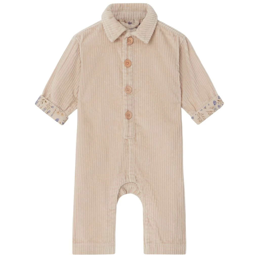 Your little one can play all day in comfort. Beige onesie by Garbo&Friends. The onesie has a corduroy design. It has a button closure at the front and snap buttons between the legs.