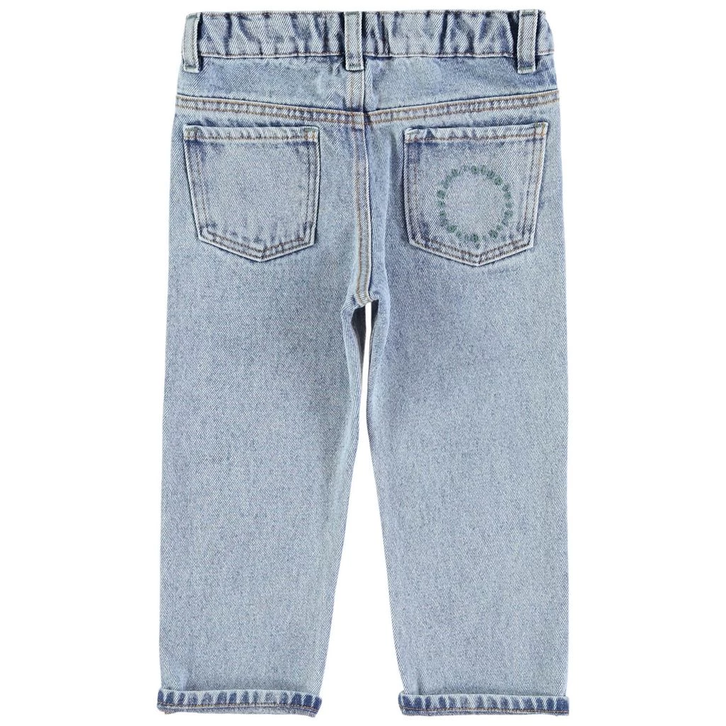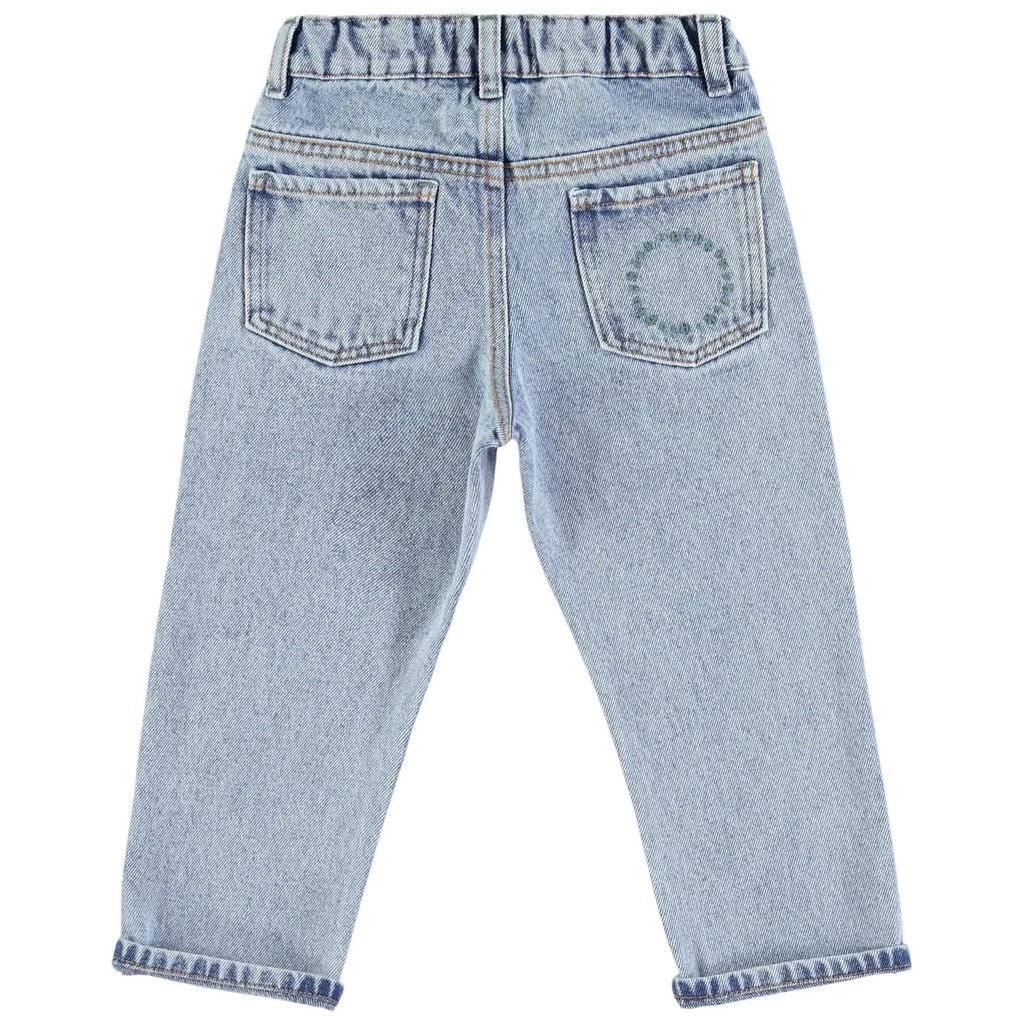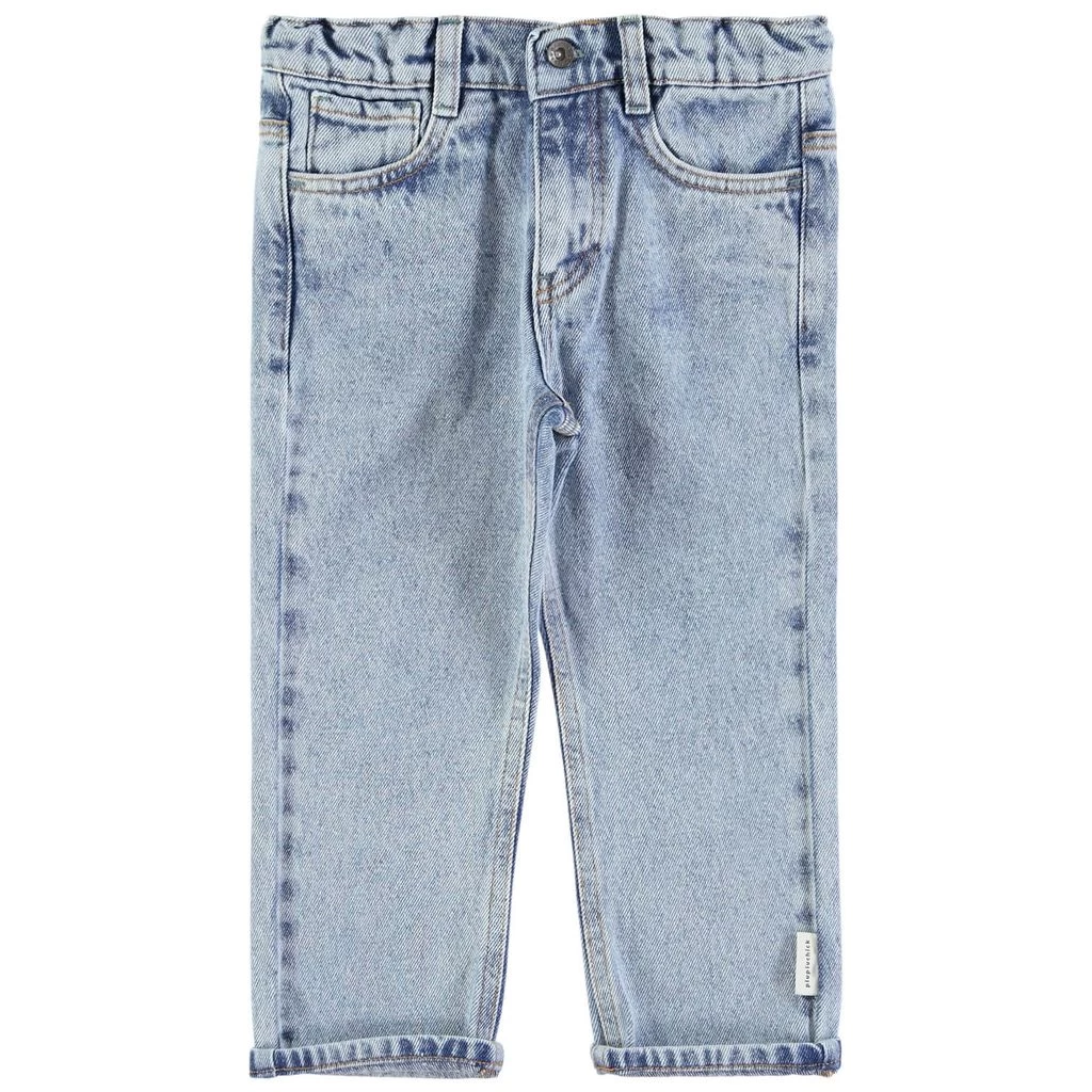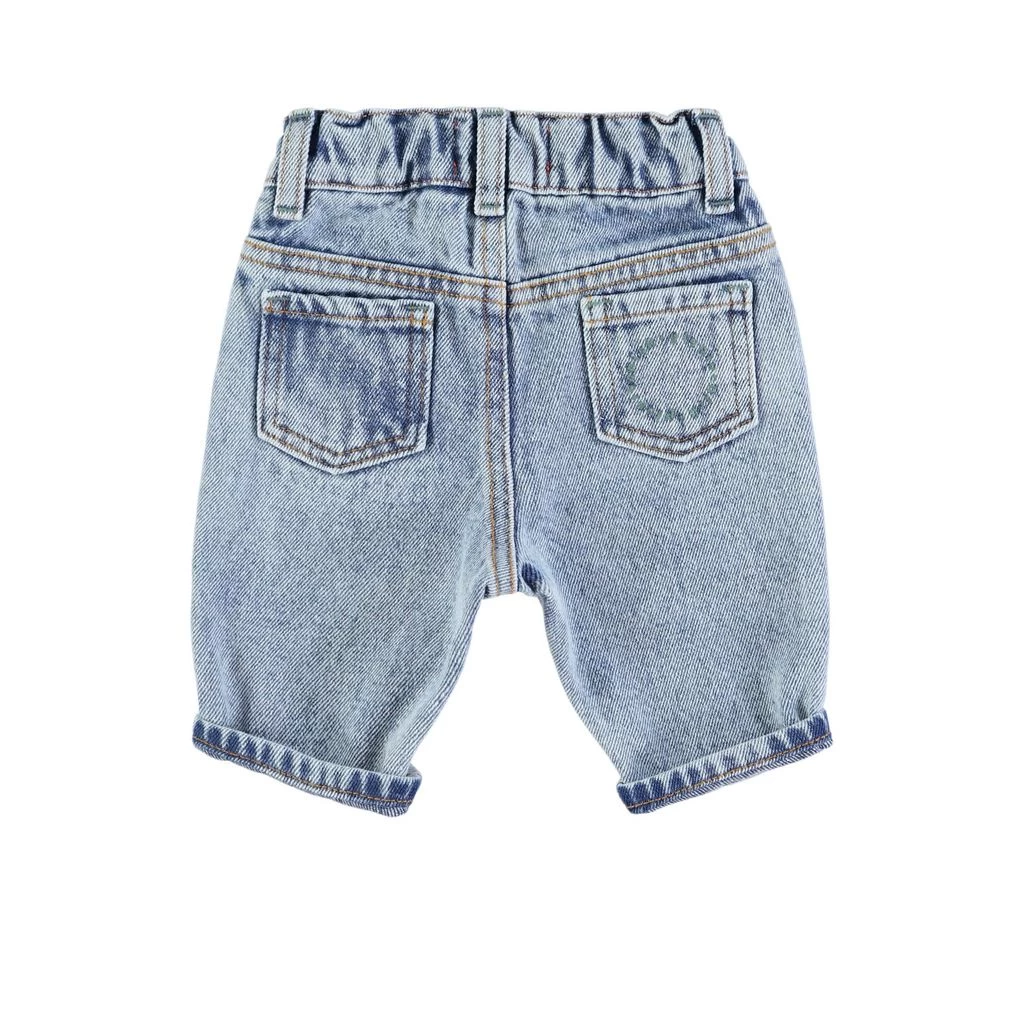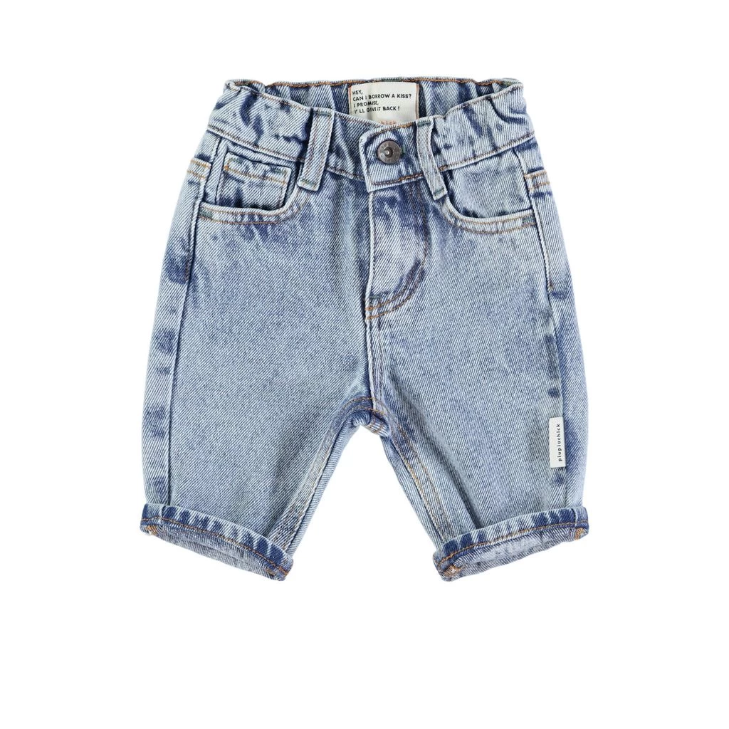 The pants are comfortable, casual and look great. Denim blue trousers by Piupiuchick. The trousers are made in Portugal and have front pockets. They have a button closure.