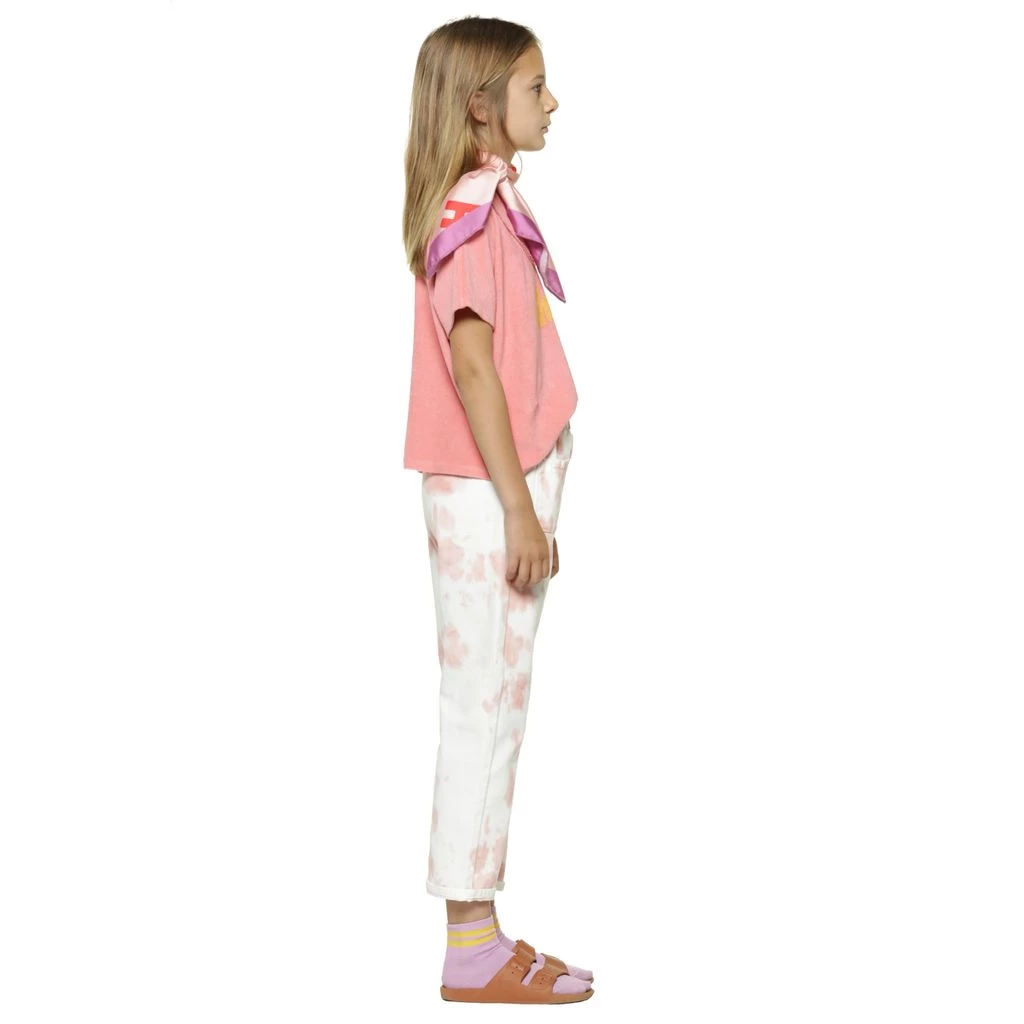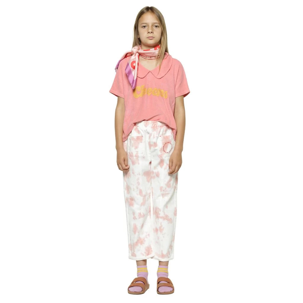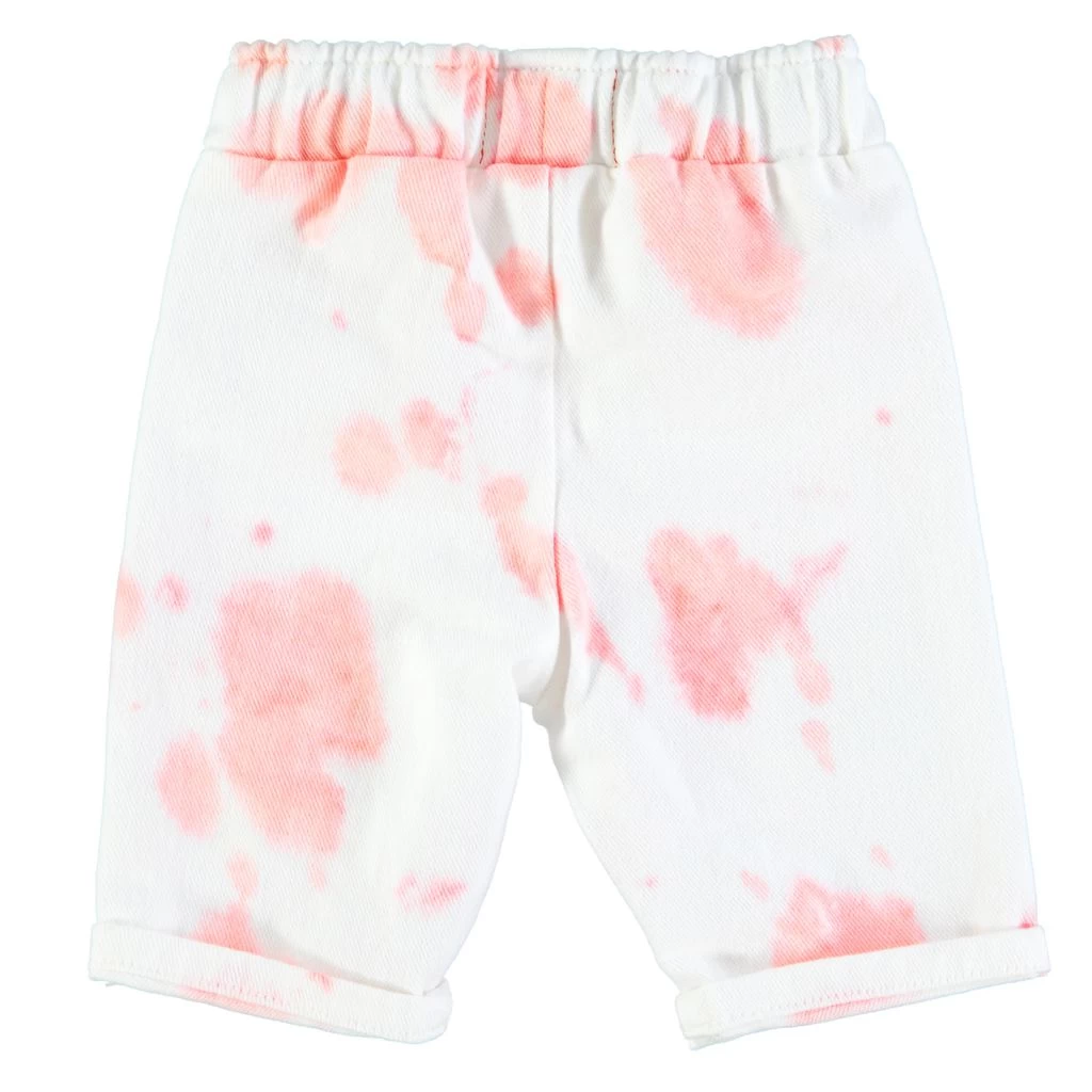 The pants are comfortable, casual and look great. Pink trousers by Piupiuchick. The trousers are made in Portugal and have a tie-dye effect. They have an elasticated waist and two front pockets.