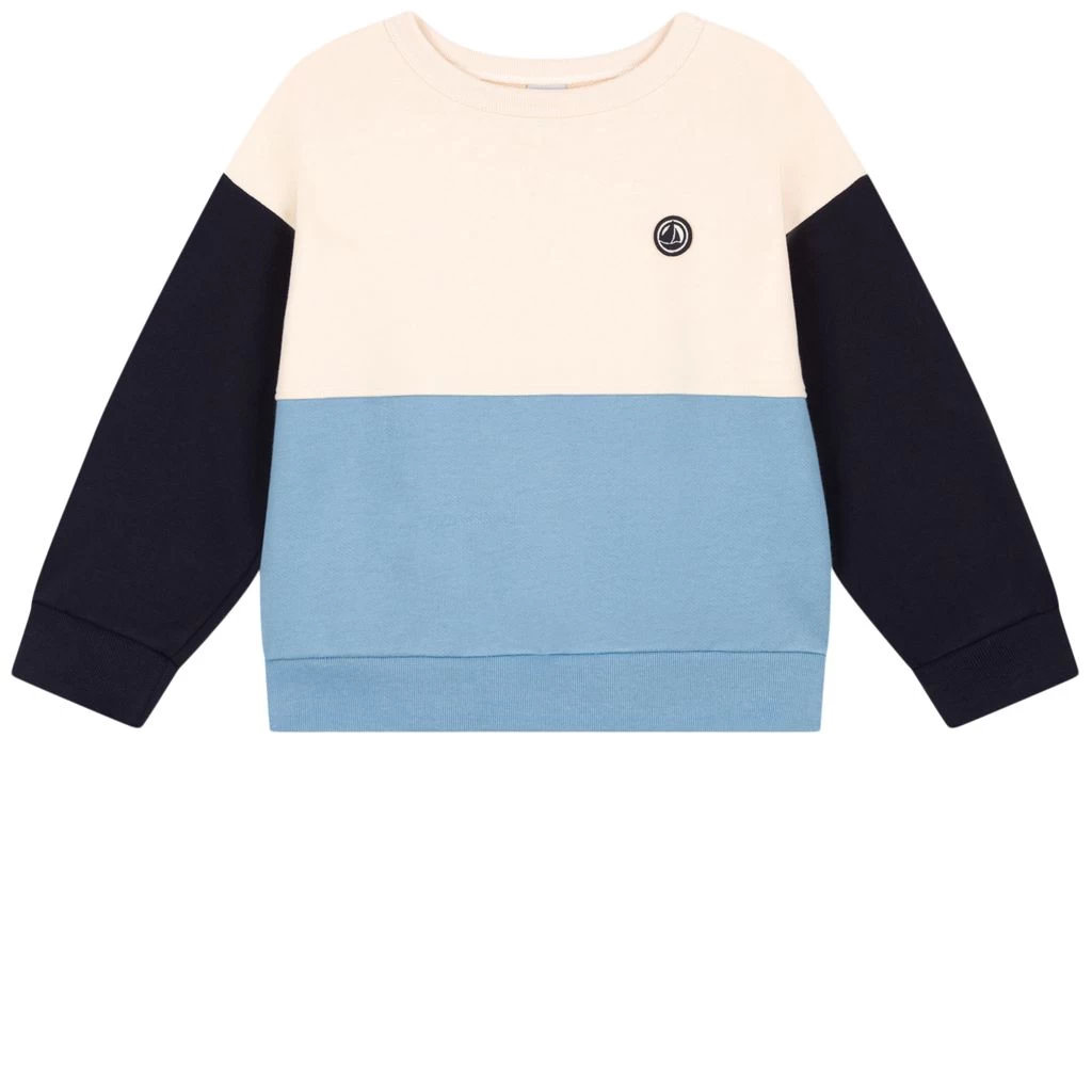 A soft, comfortable sweater you’ll wear over and over again. Cream sweatshirt by Petit Bateau. The sweatshirt has a color-blocked design. It has a regular fit and ribbed cuffs.
