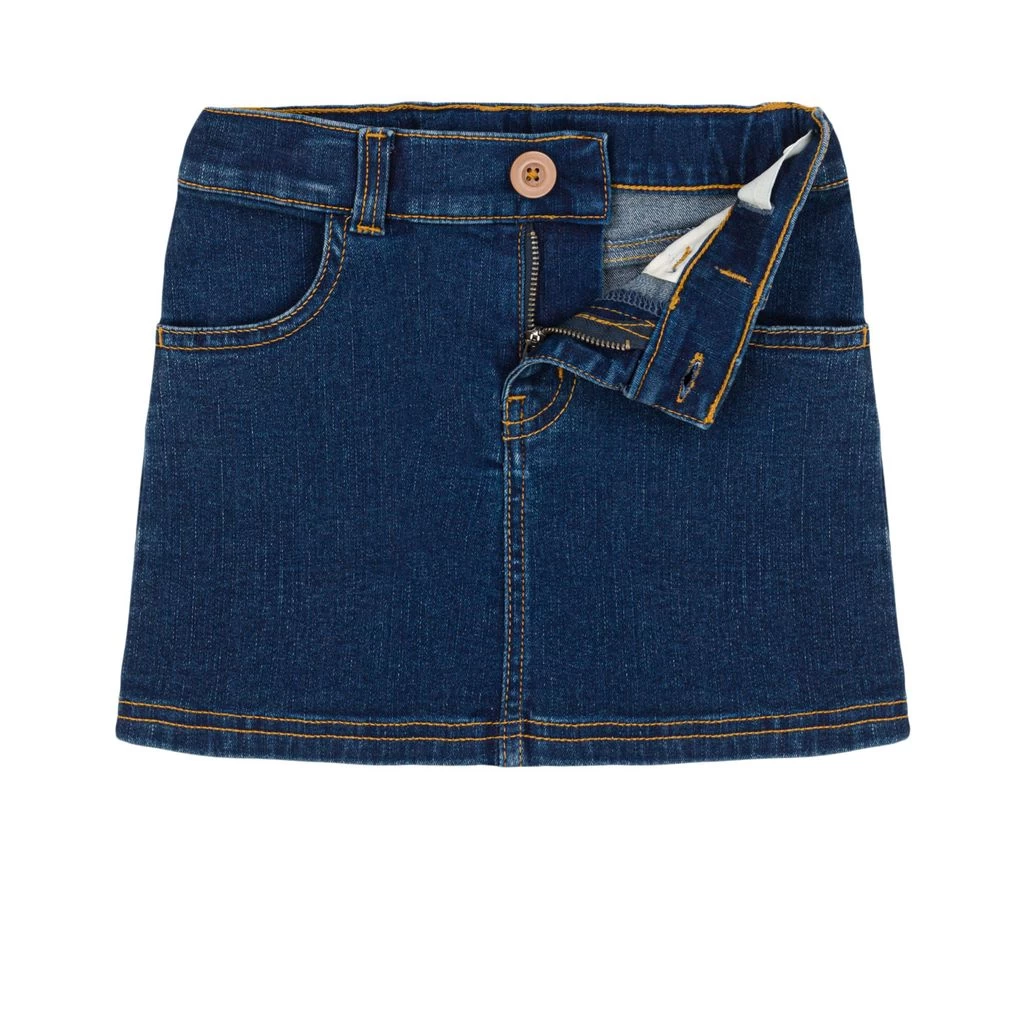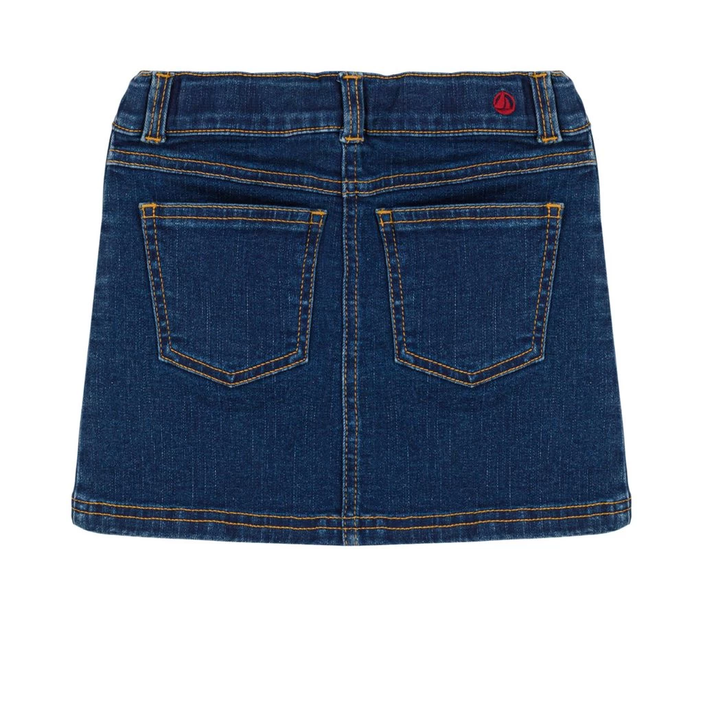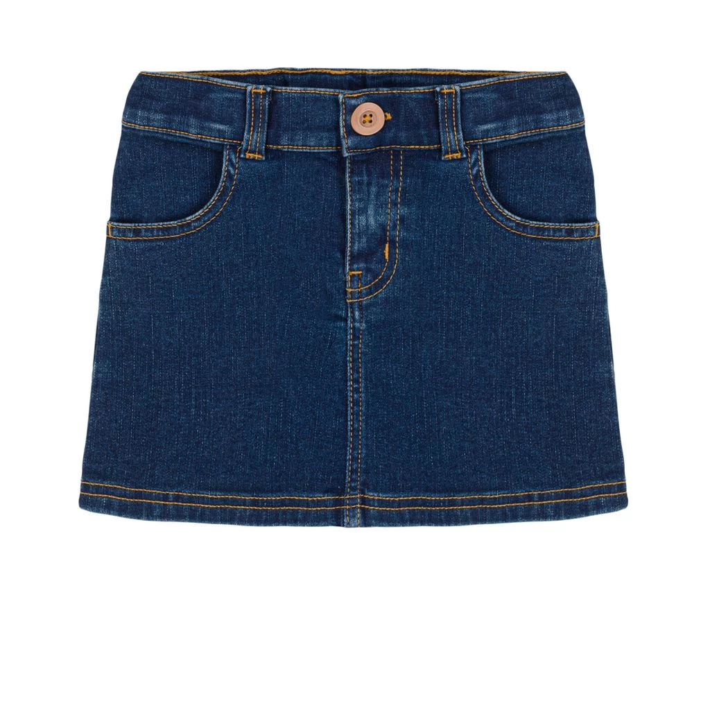 A denim skirt that’s perfect for any day. Blue denim skirt by Petit Bateau. The skirt has a straight fit. It has an elasticated waist, a zip fly with a button closure, two curved front pockets and patch pockets at the back.