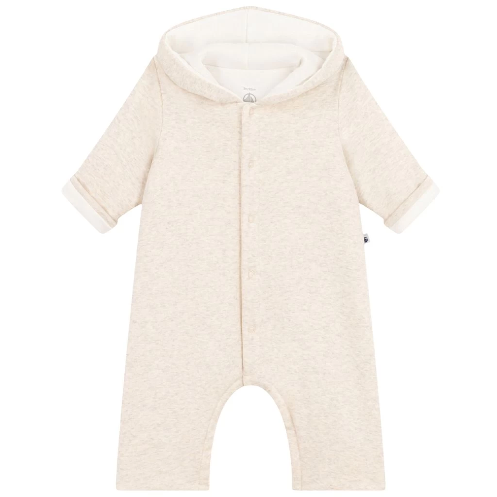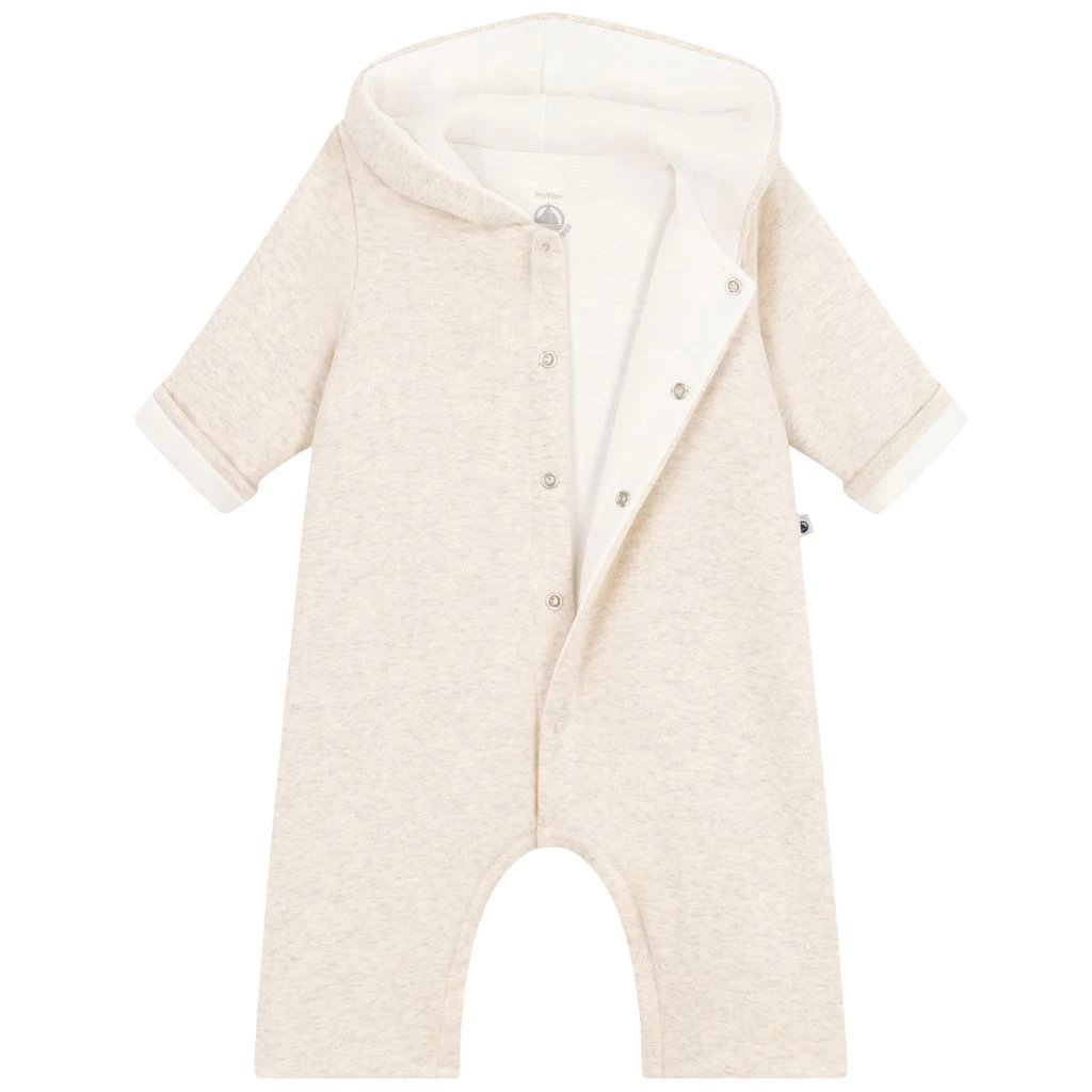 Let your baby explore and play in comfort. Beige onesie by Petit Bateau. The onesie has light padding. It has a soft jersey lining and snap buttons at the front and between the legs.