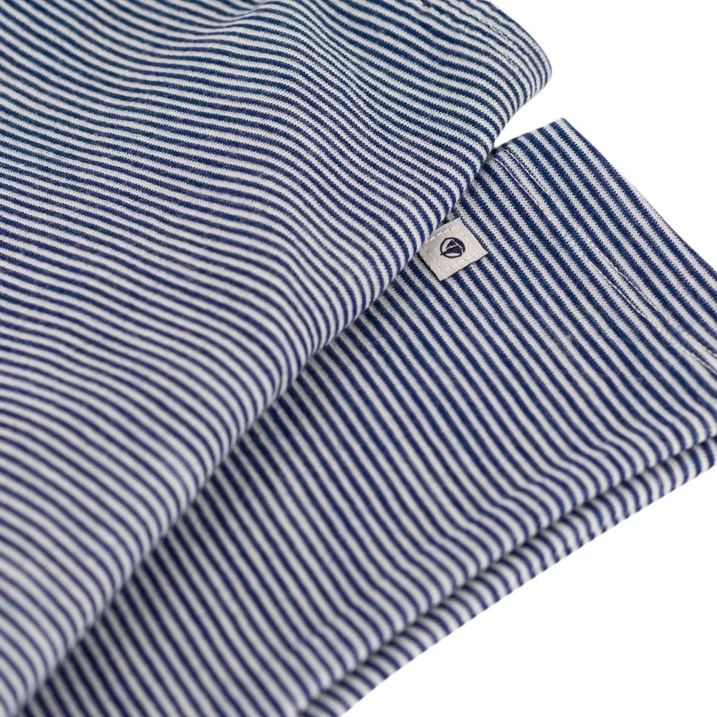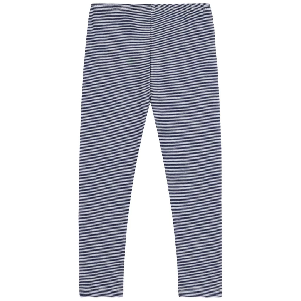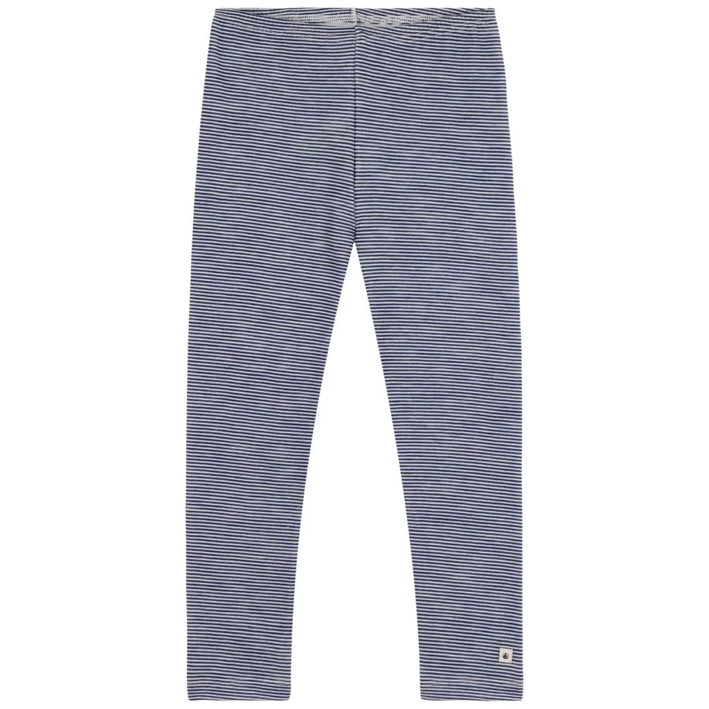 They’ll keep you warm and happy. Blue leggings by Petit Bateau. The leggings have a pinstriped design.