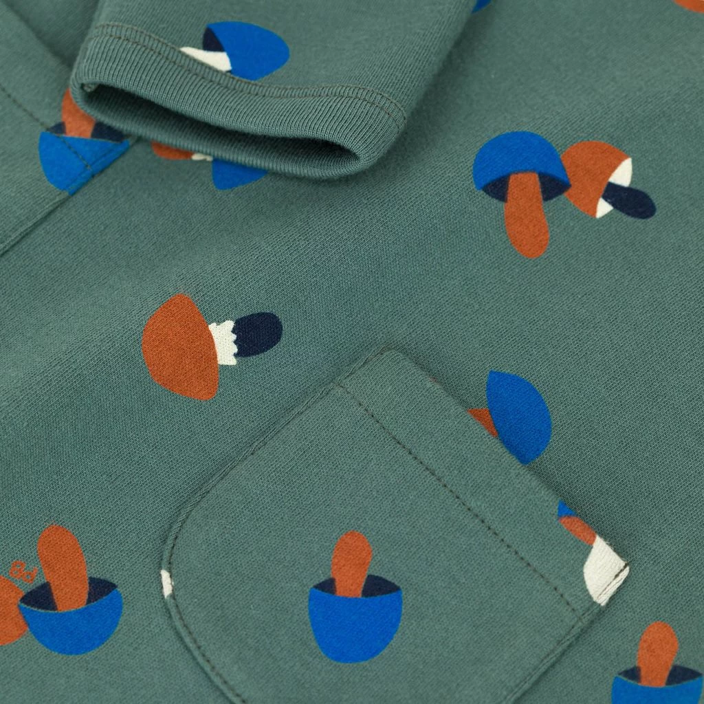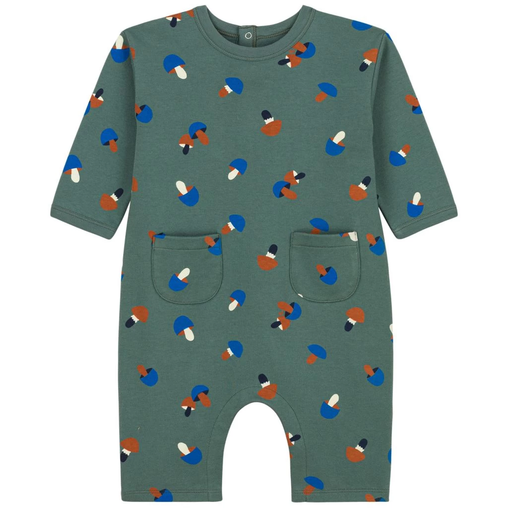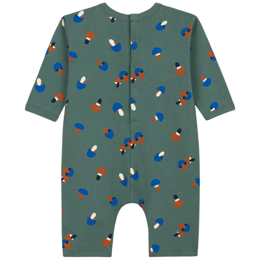 Let your baby explore and play in comfort. Green jumpsuit by Petit Bateau. The jumpsuit has a cute all-over print. It has a soft, cosy teddy fleece material and a snap button closure at the back.
