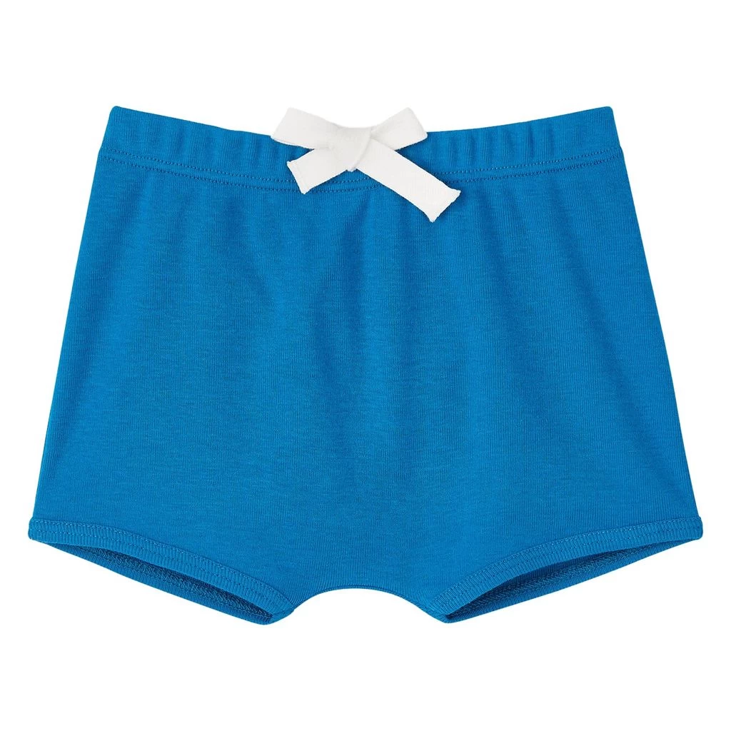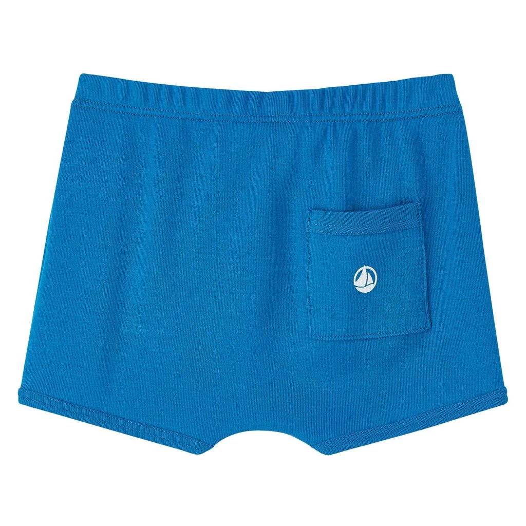 Let your baby explore and play in comfort. Blue shorts by Petit Bateau. The shorts have an elasticated waist. They have a back pocket.