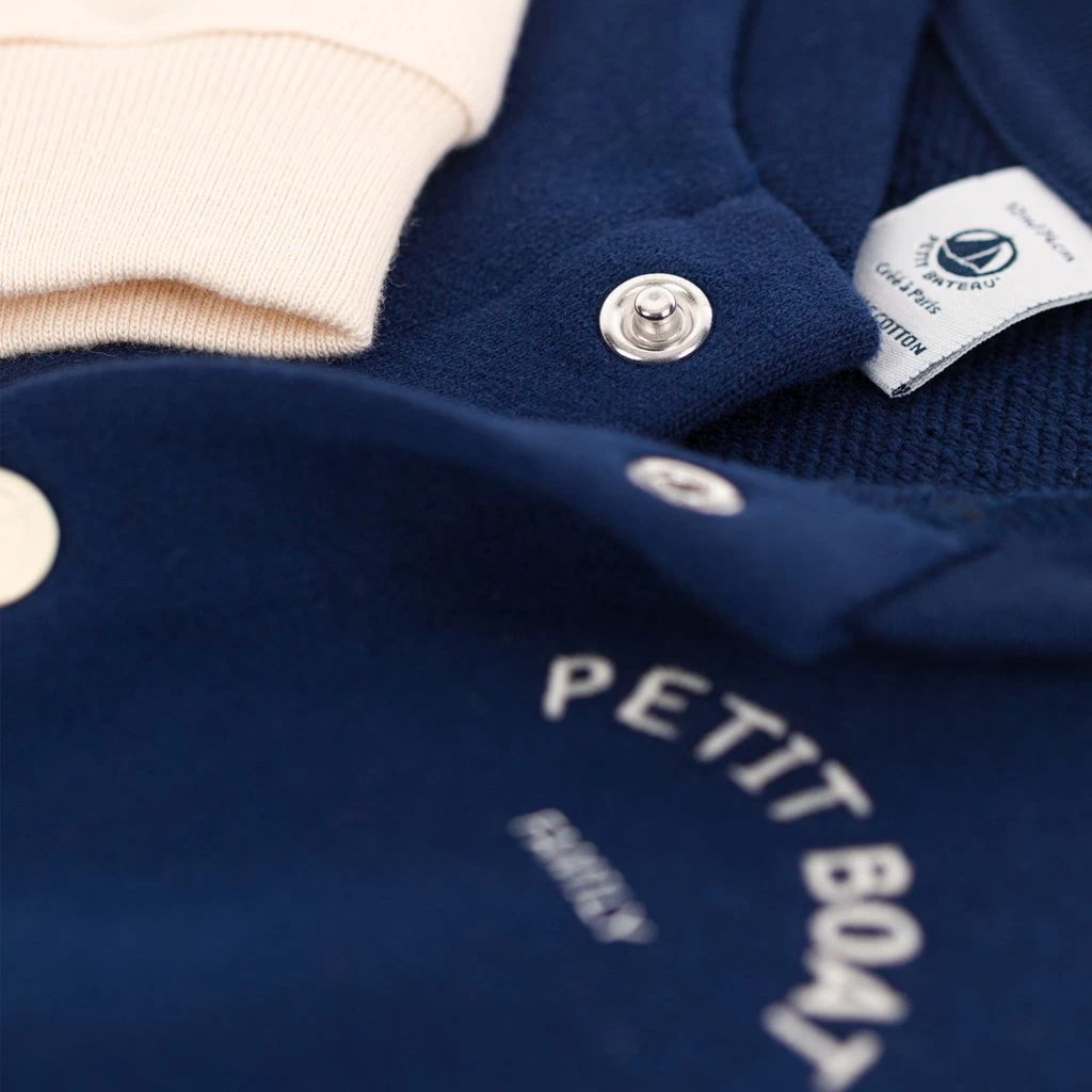 Fall in love with this sweater and your new style!. Beige jumper by Petit Bateau. The jumper has a soft, comfy fleece material. It has a snap button at the front, a print on the chest and a ribbed cuff.
