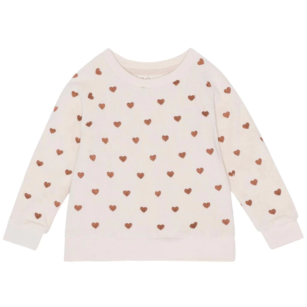 An on-trend and comfortable sweatshirt for everyday life. Cream Pluto sweatshirt by Flöss. The sweatshirt has an all-over print with hearts. It has a regular fit and ribbed cuffs.