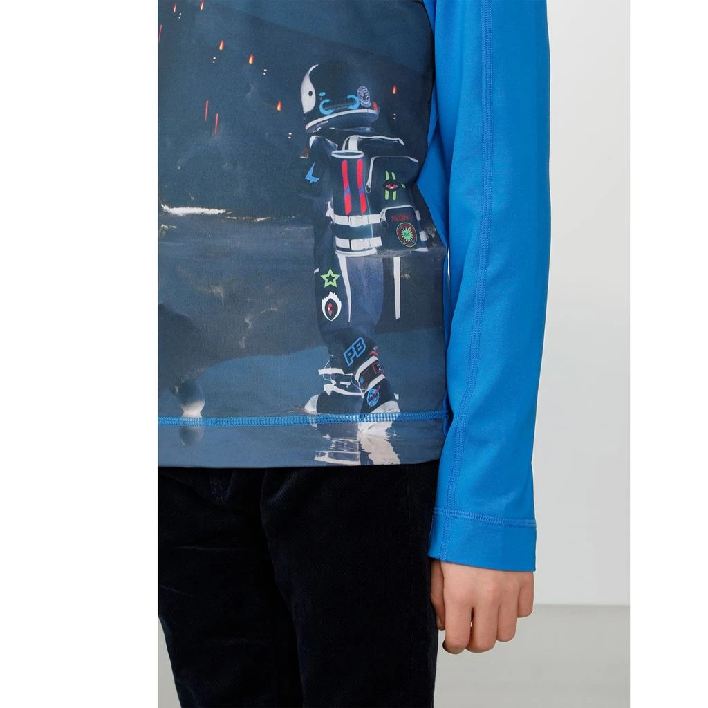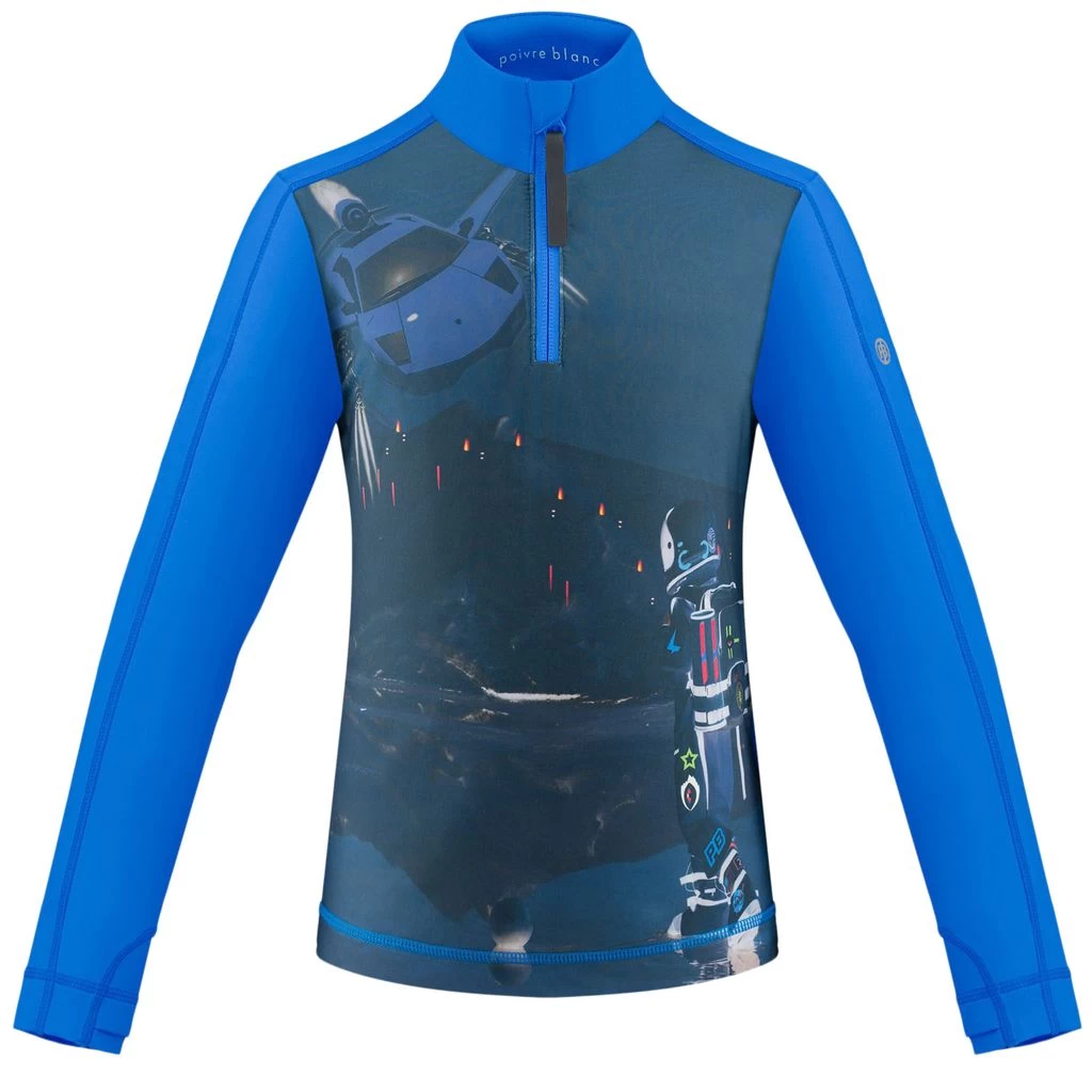 Perfect for layering on cold days. Blue baselayer top by Poivre Blanc. The baselayer top has a stretchy material. It has flatlock seams and a half-length zip closure at the front.