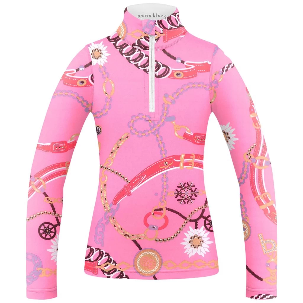 Perfect for layering on cold days. Pink baselayer top by Poivre Blanc. The baselayer top has a stretchy material. It has flatlock seams and a half-length zip closure at the front.