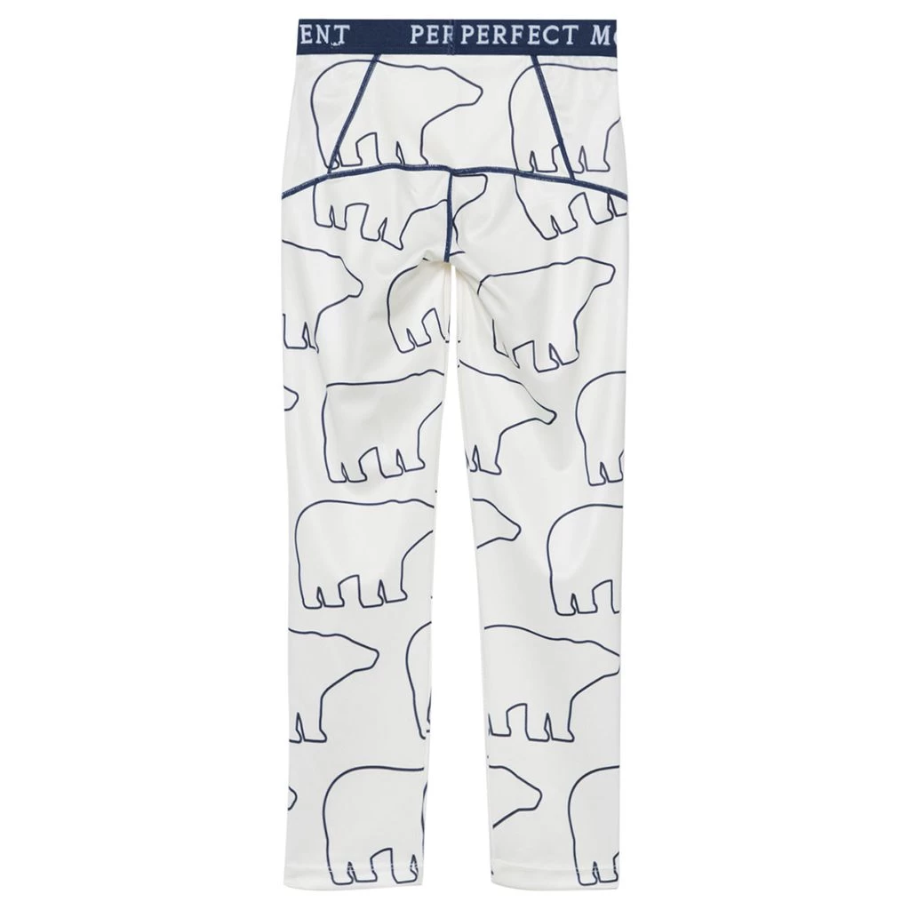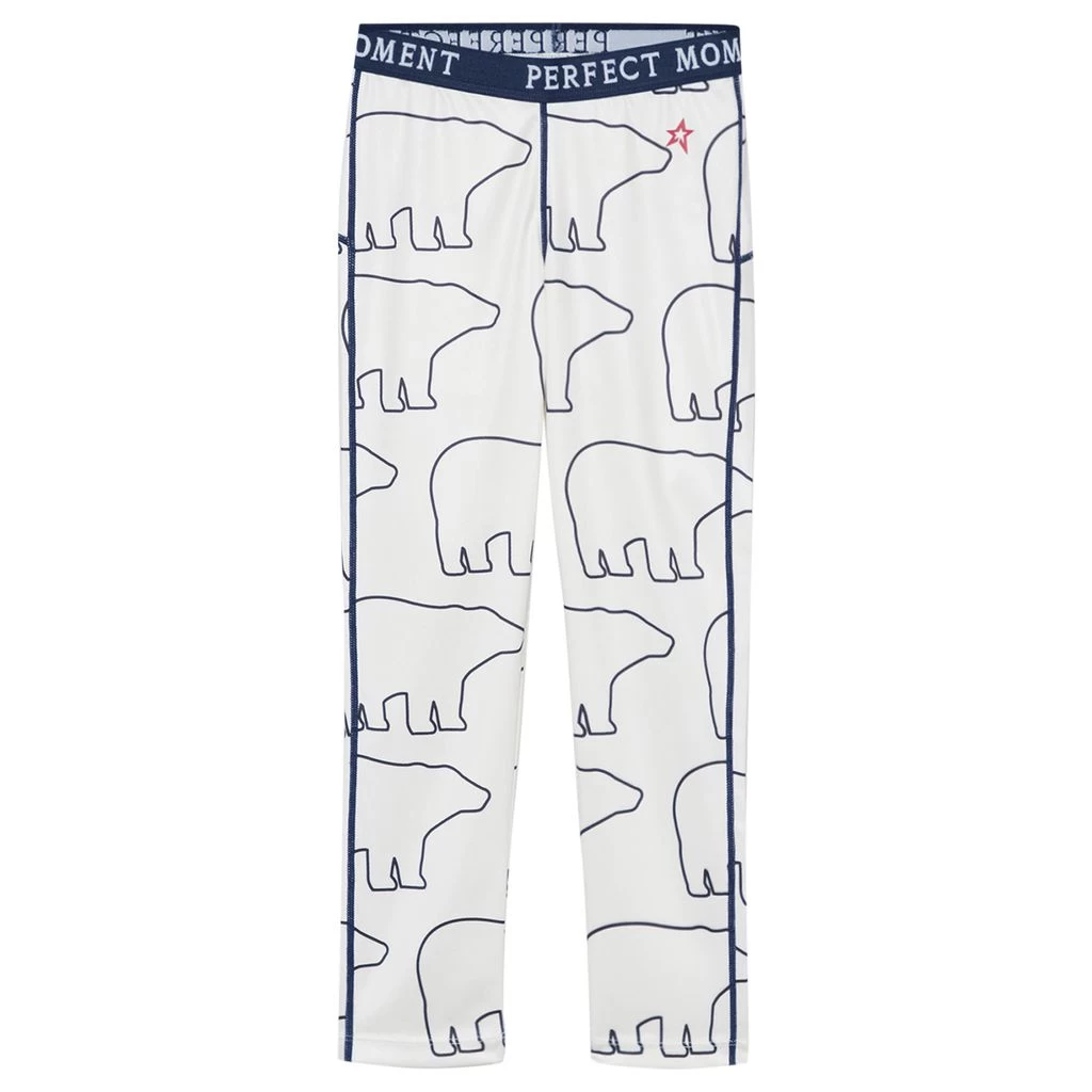 White Polar Bear baselayer pants by Perfect Moment. The baselayer pants have flatlock seams. They have an elasticated waist.