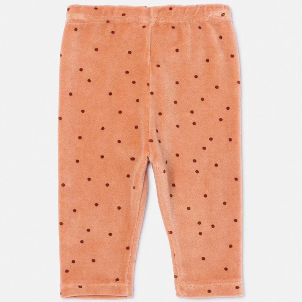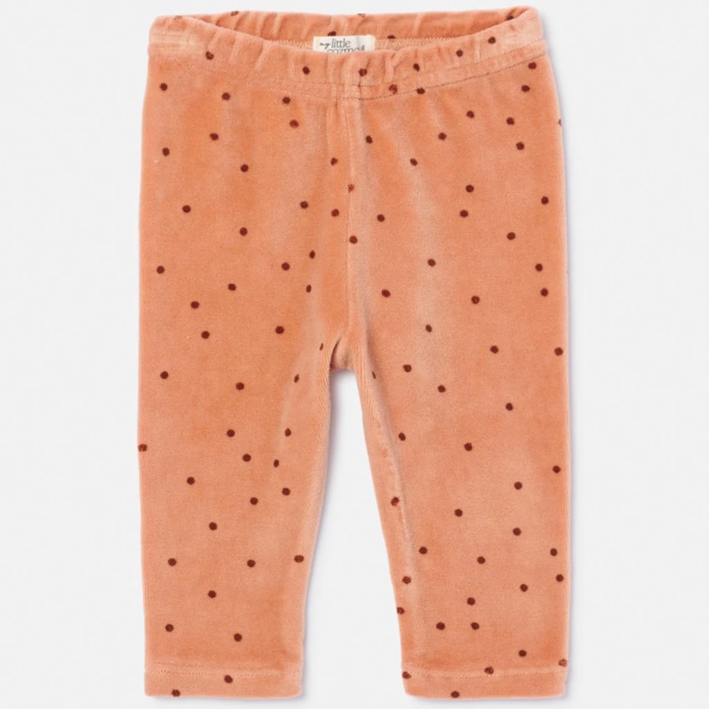 Stay in style with these trendy leggings. Pink Polka Dot Velour baby leggings by My Little Cozmo. The baby leggings have an all-over print. They have an elasticated waist.