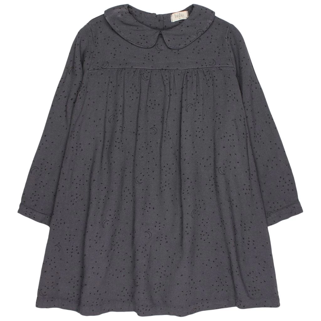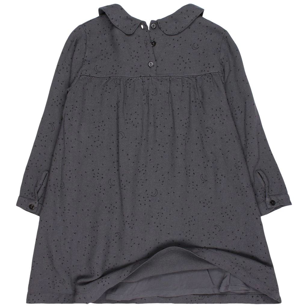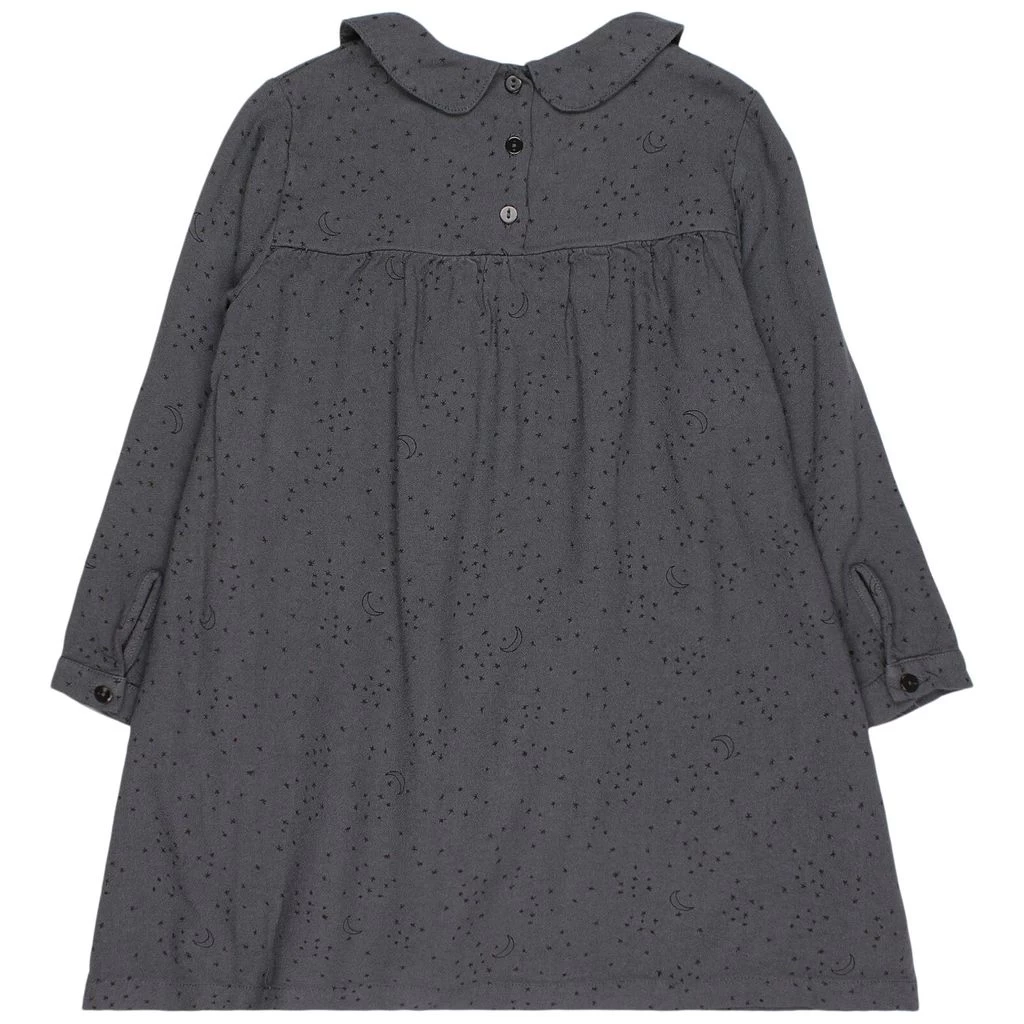 A dress for every occasion. Grey dress by búho. The dress has an A-line silhouette. It has soft lining, a Peter Pan collar and a button closure at the back.