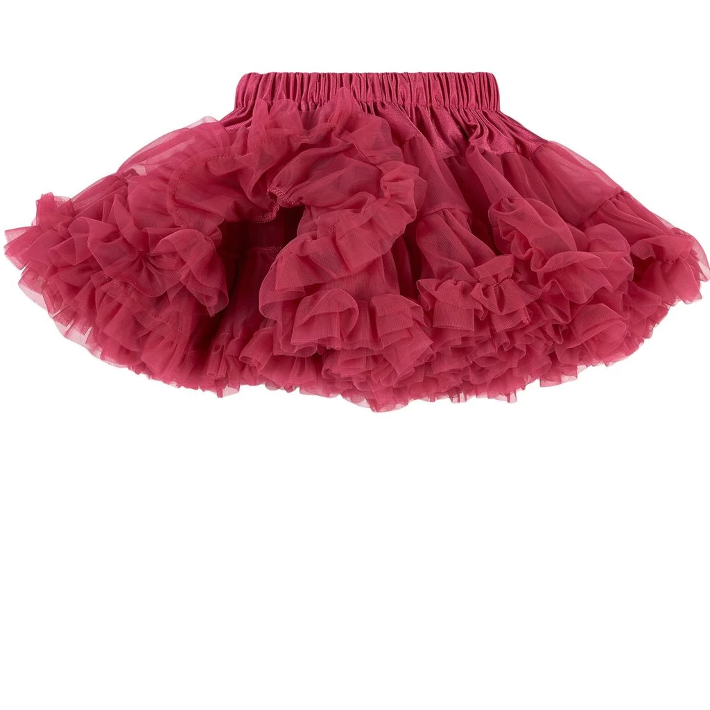 Red Red Queen tutu by Dolly by Le Petit Tom. The tutu has a flared fit. It has an elasticated waist with a bow detail, soft lining and a tulle overlay.