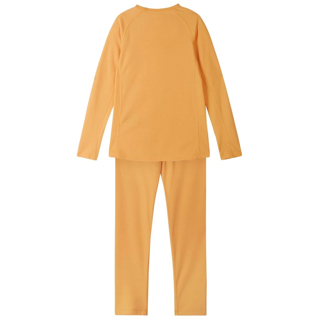 Perfect for layering on cold days. Yellow Lani baselayer set by Reima. The baselayer set has flat-stitched seams. It has a soft, stretchy material, a baselayer top with raglan sleeves and baselayer pants with an elasticated waist.