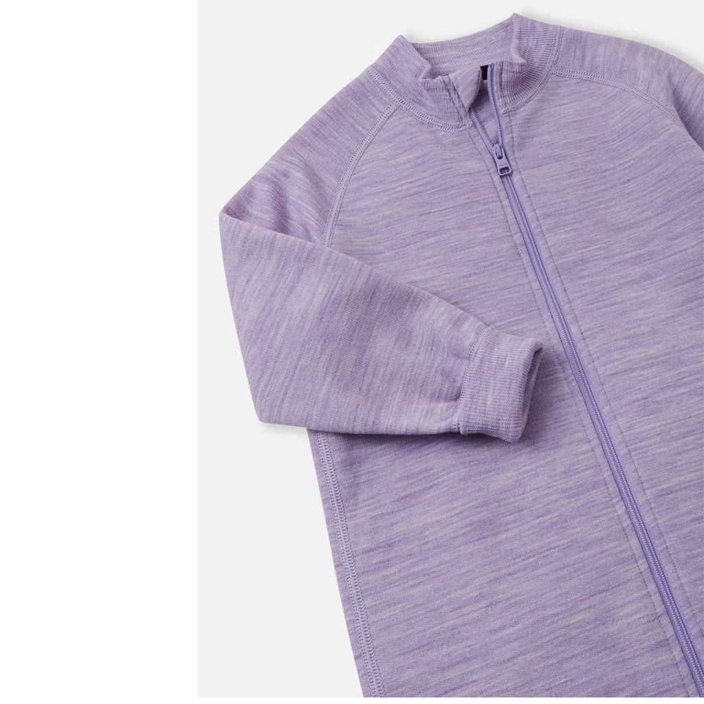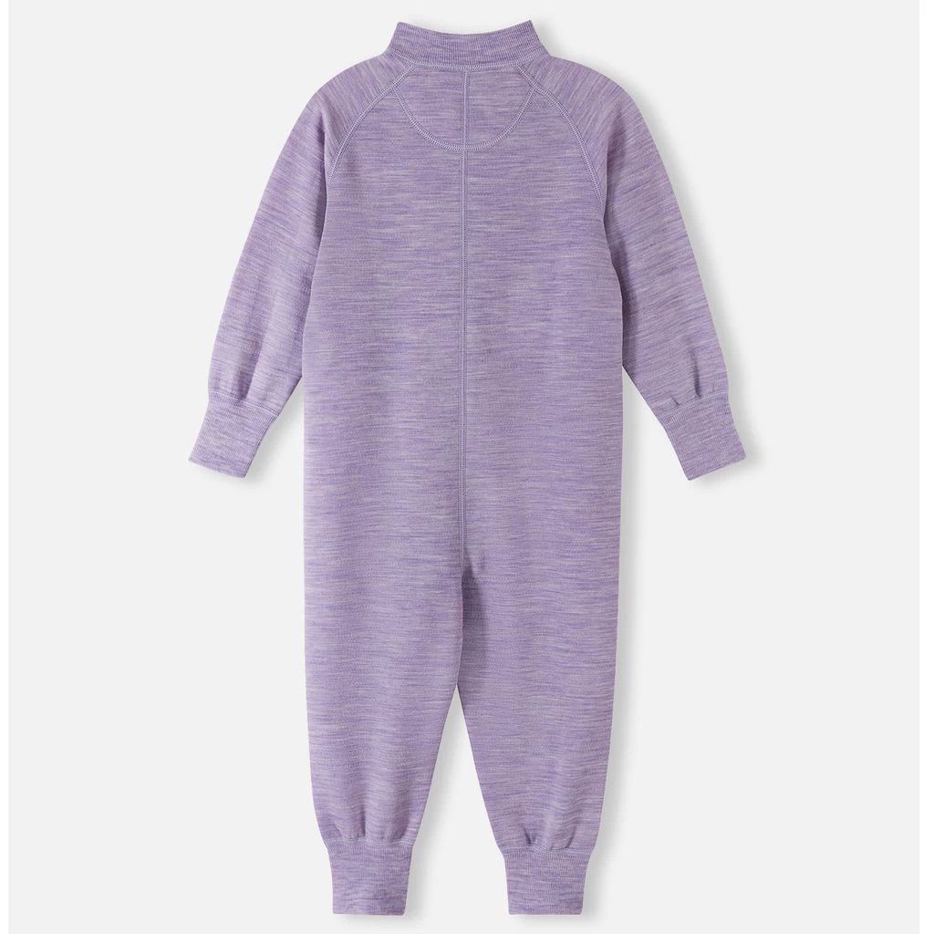 Wool brings you warmth and comfort. Purple Parvin onesie by Reima. The onesie has a zip closure at the front. It has ribbed cuffs.