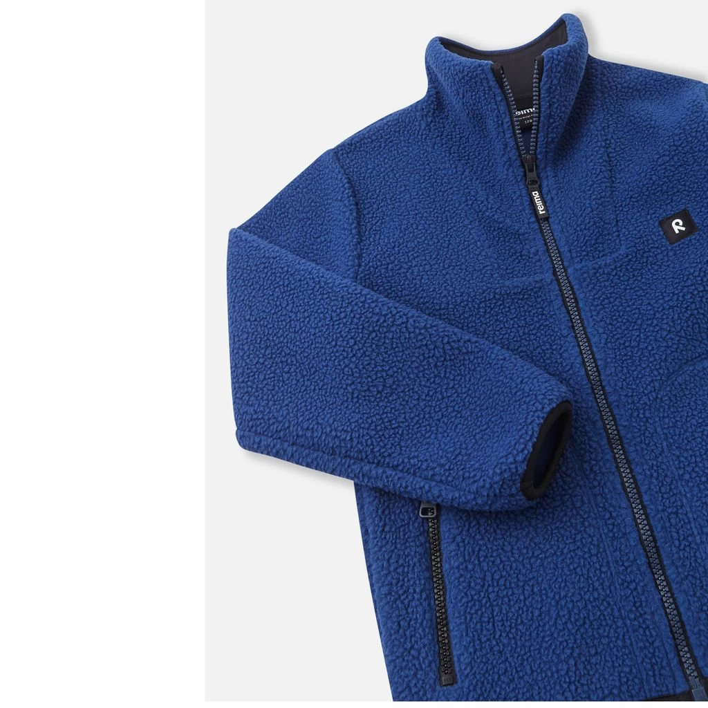 Keep warm with comfy fleece. Blue Turkki fleece jacket by Reima. The jacket has a zip closure at the front. It has two front pockets.