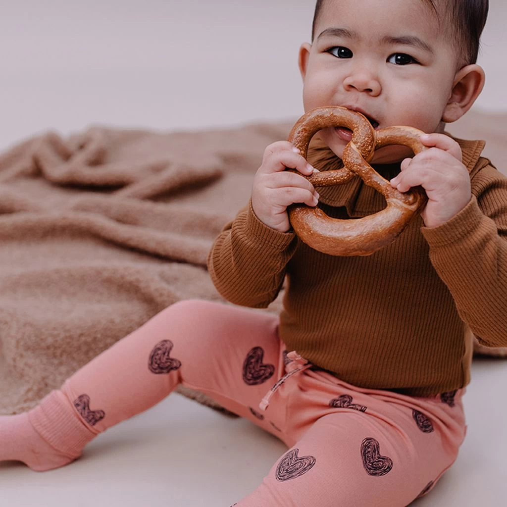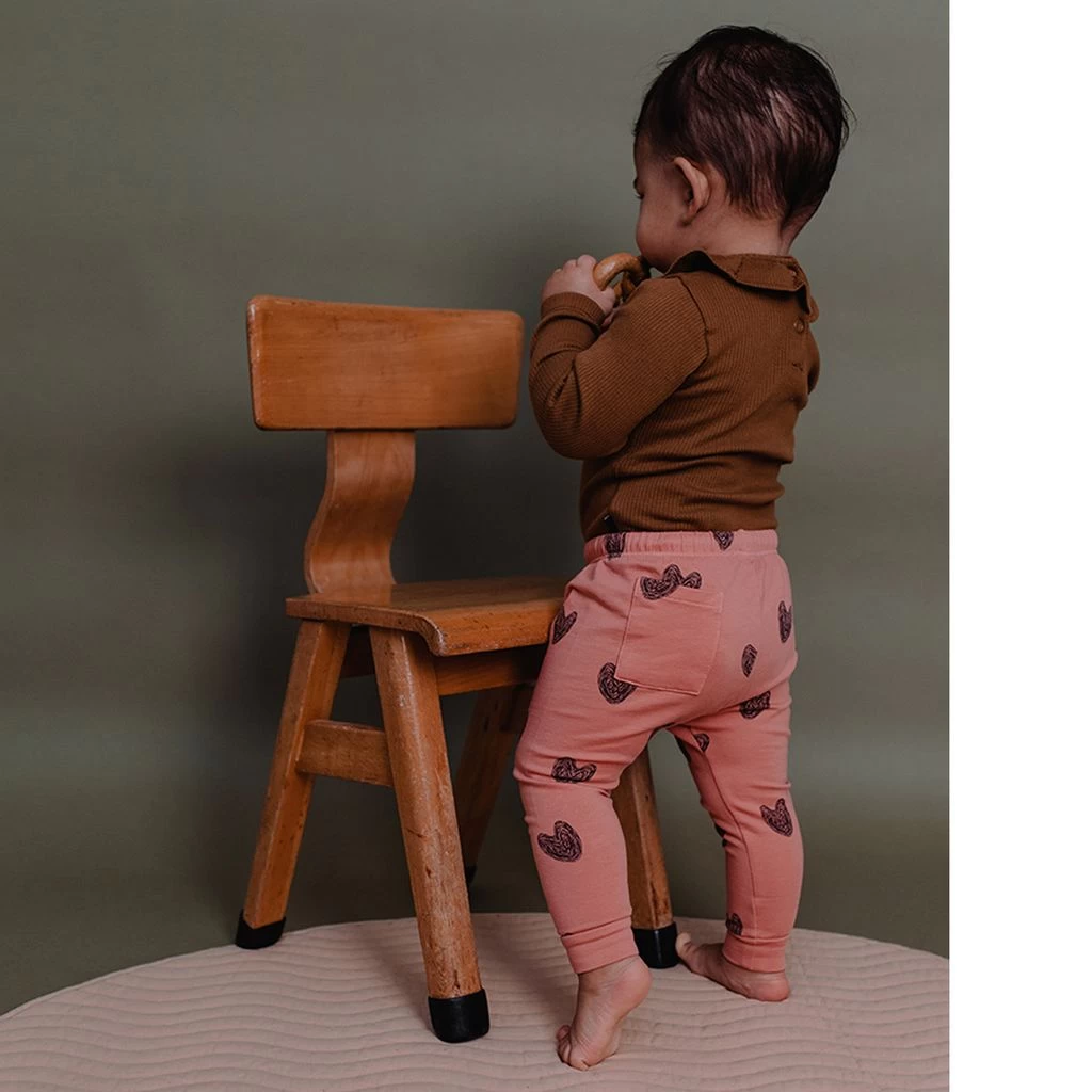 Let your baby explore and play in comfort. Pink trousers by Sproet and Sprout. The trousers have a ribbed design. They have an elasticated drawstring waist, a back pocket and ribbed cuffs.