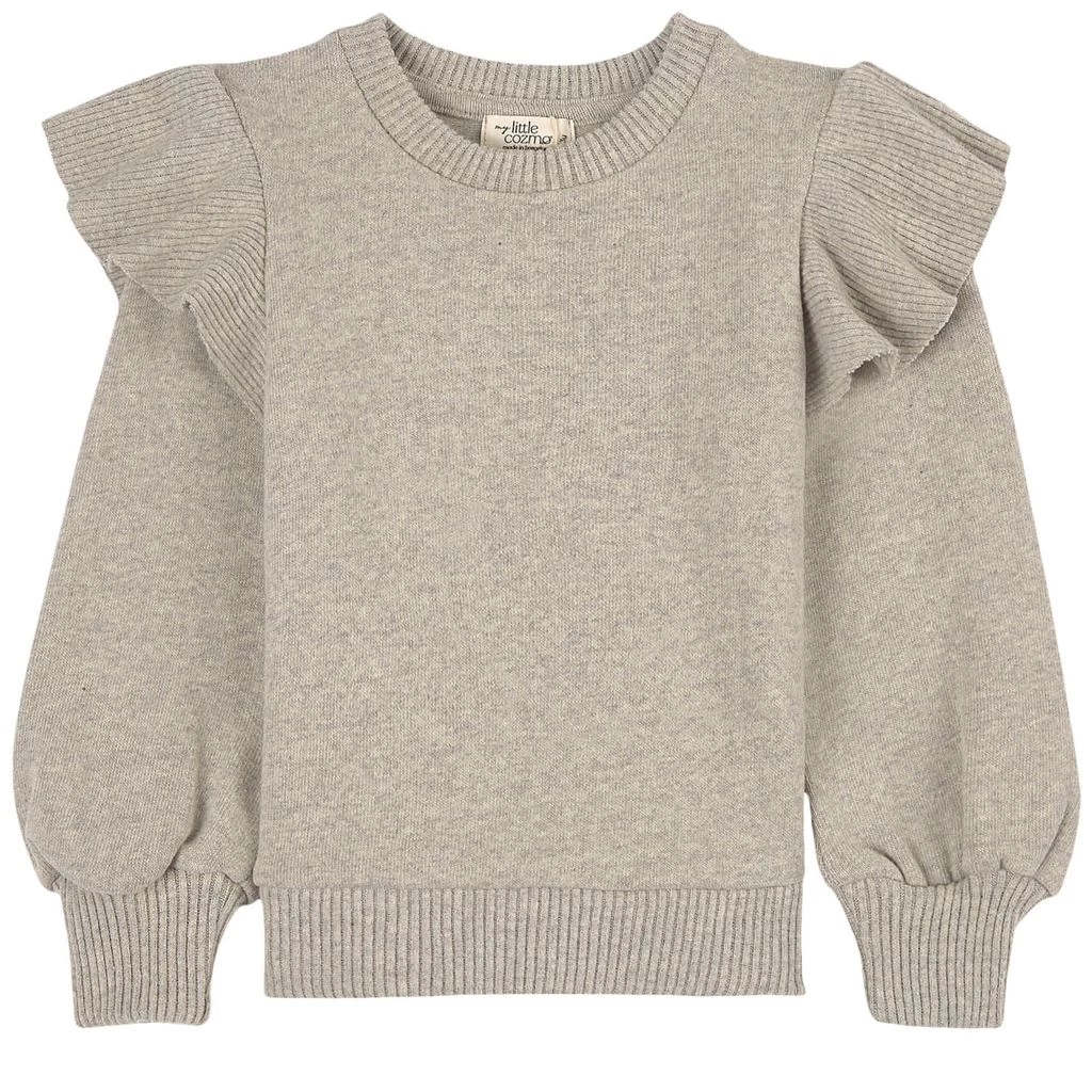 A soft, comfortable sweater you’ll wear over and over again. Light grey jumper by My Little Cozmo. The jumper has rib-knit trims. It has ruffles on the shoulders.