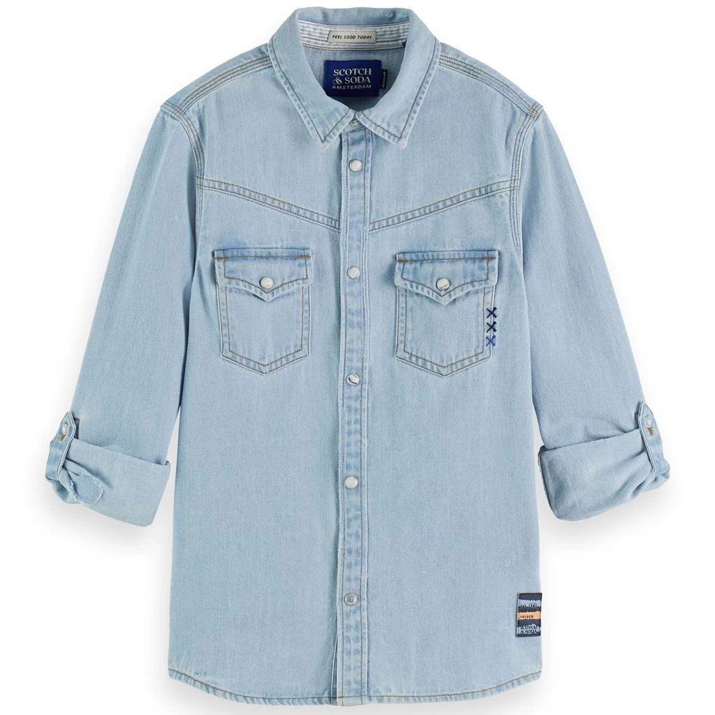 No matter the occasion denim is always the right choice. Light blue denim shirt by Scotch & Soda. The shirt has a regular fit. It has two chest pockets and folded sleeves.