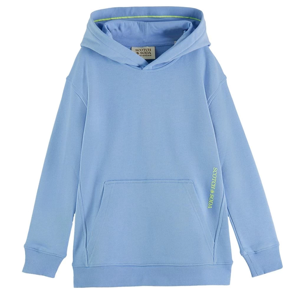 Dress up in style this season with one of these chic hoodies. Blue hoodie by Scotch & Soda. The hoodie has an oversized fit. It has a jersey-lined hood, a kangaroo pocket and ribbed cuffs.