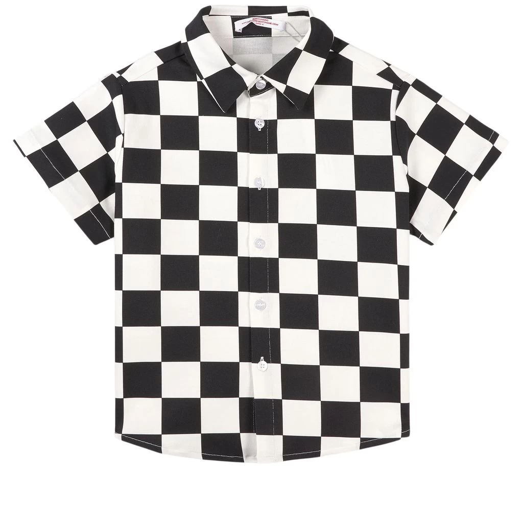 Black shirt by BO(Y)SMANS. The shirt has a wide fit. It has a button closure at the front.