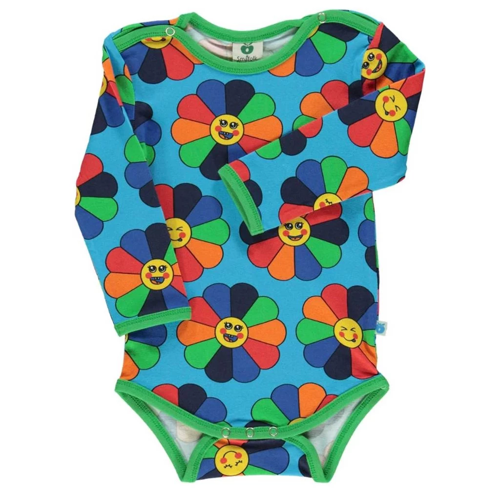 Treat your baby with a new favorite body. Blue baby body by Småfolk. The baby body has a playful all-over print. It has a snap button closure between the legs and at the shoulders.