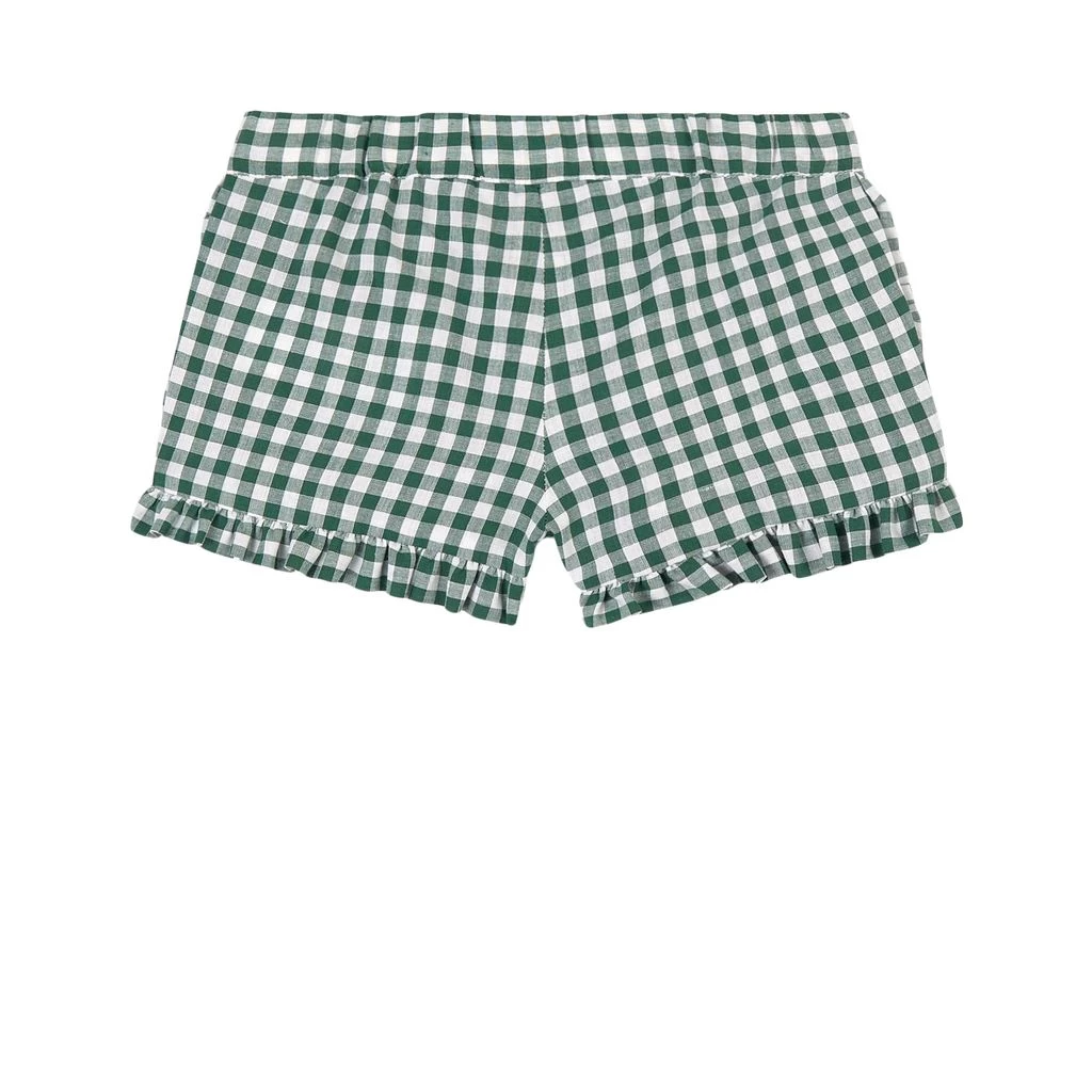 Green Madeline shorts by Sonia Rykiel. The shorts have an elasticated waist. They have ruffle detailing at the front.
