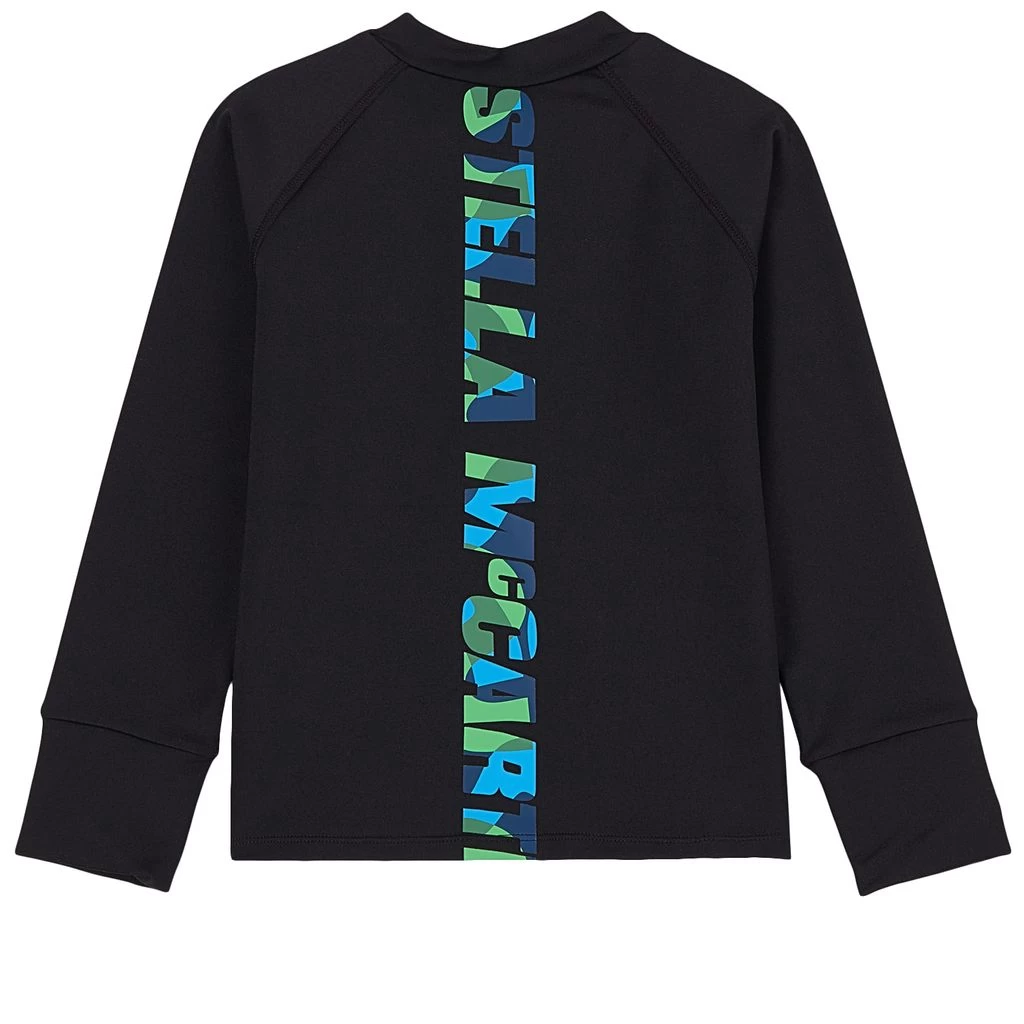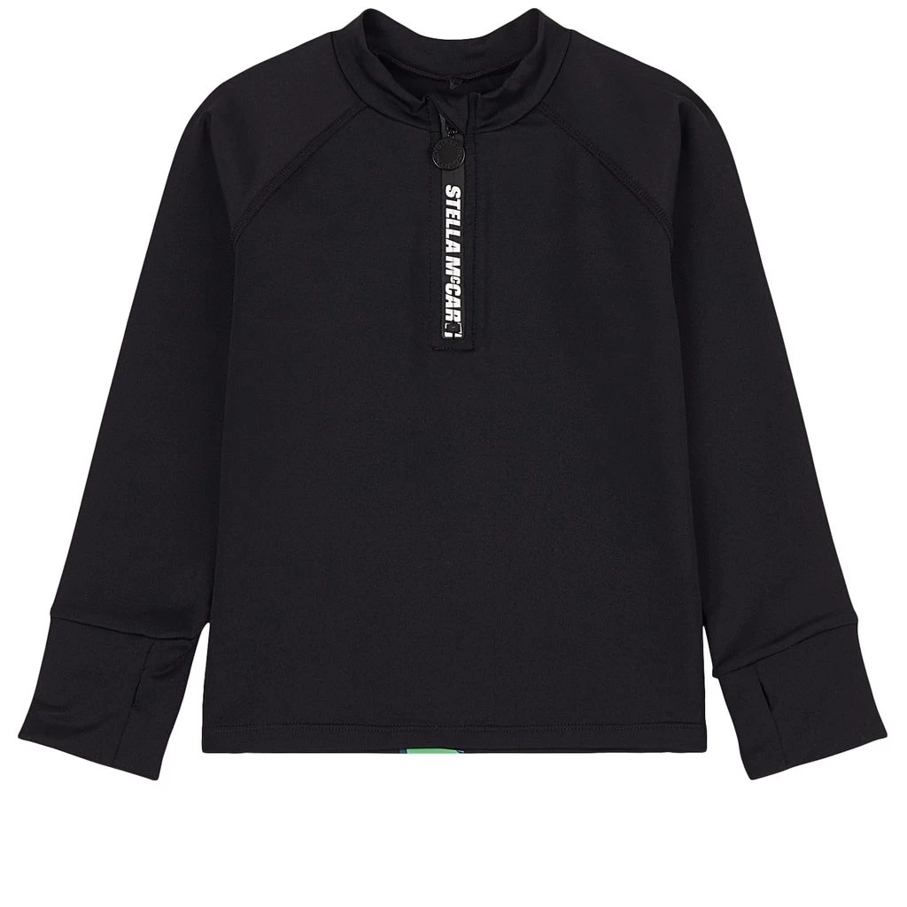 Be ready for sporty days. Black sports top by Stella McCartney Kids. The top has a stretchy design. It has a half-length zip closure at the front and thumbholes at the cuffs.
