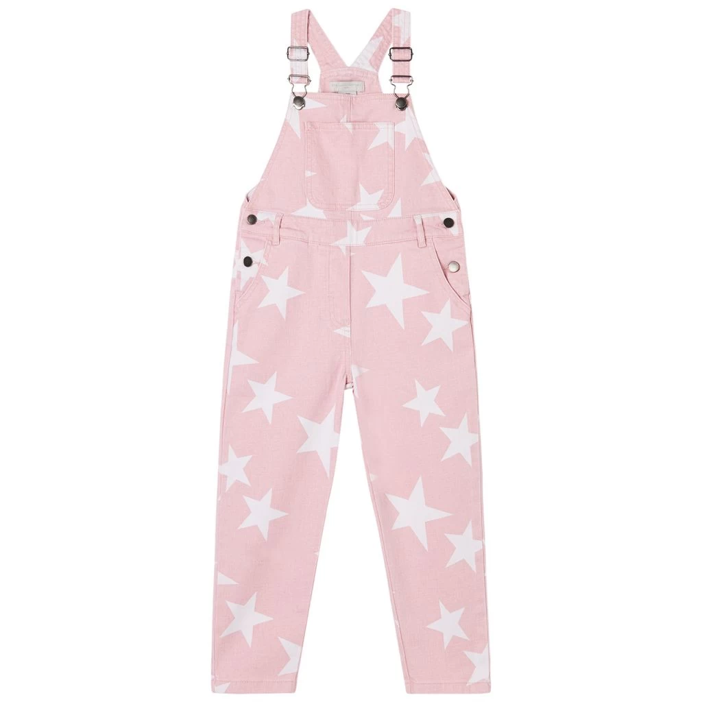 Comfy pants in a stylish design. Pink overalls by Stella McCartney Kids. The overalls have adjustable shoulder straps. They have a button closure at the sides and three front pockets.