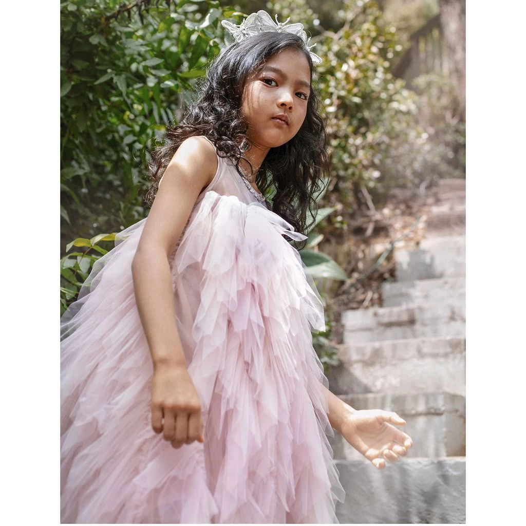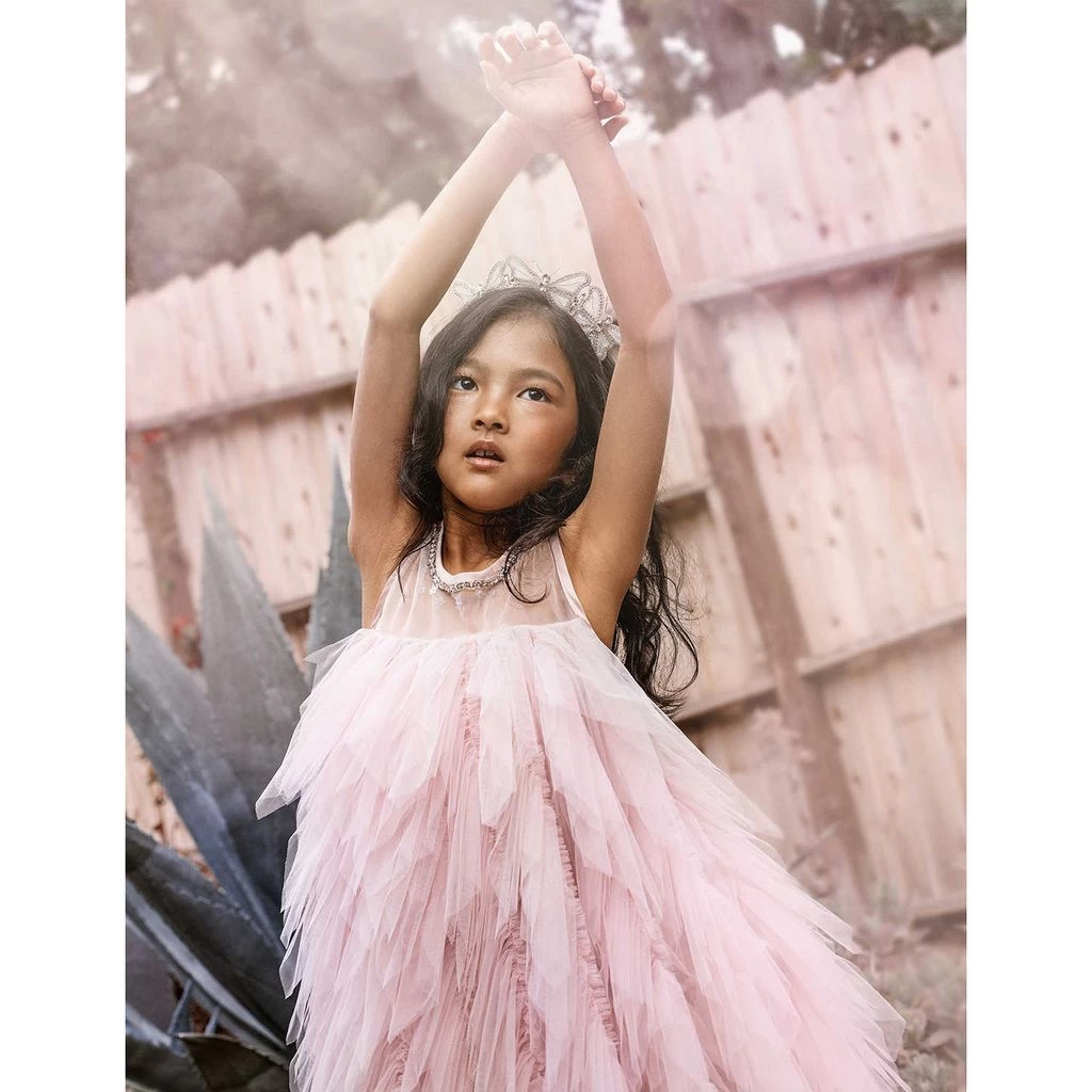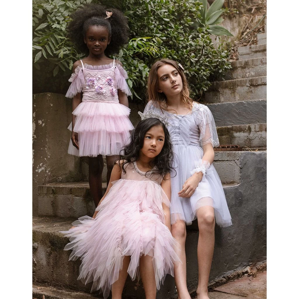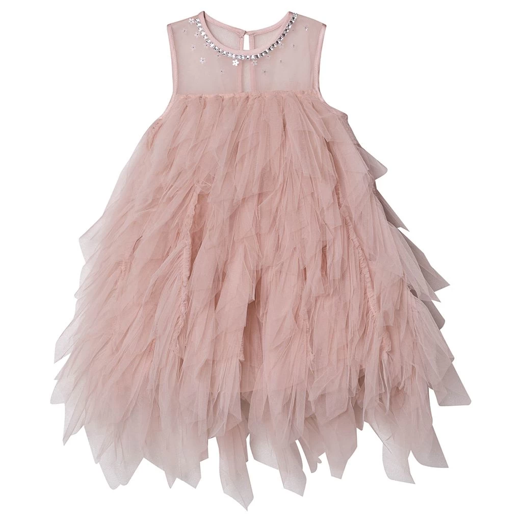 This beautiful pale pink dress from Tutu Du Monde is sure to be one of their favourite things to wear. Expertly crafted, it features a keyhole fastening at the back, diamante detailing around the neckline and a frothy, tiered skirt. Team it with a metallic headband and a pair of ballet shoes.