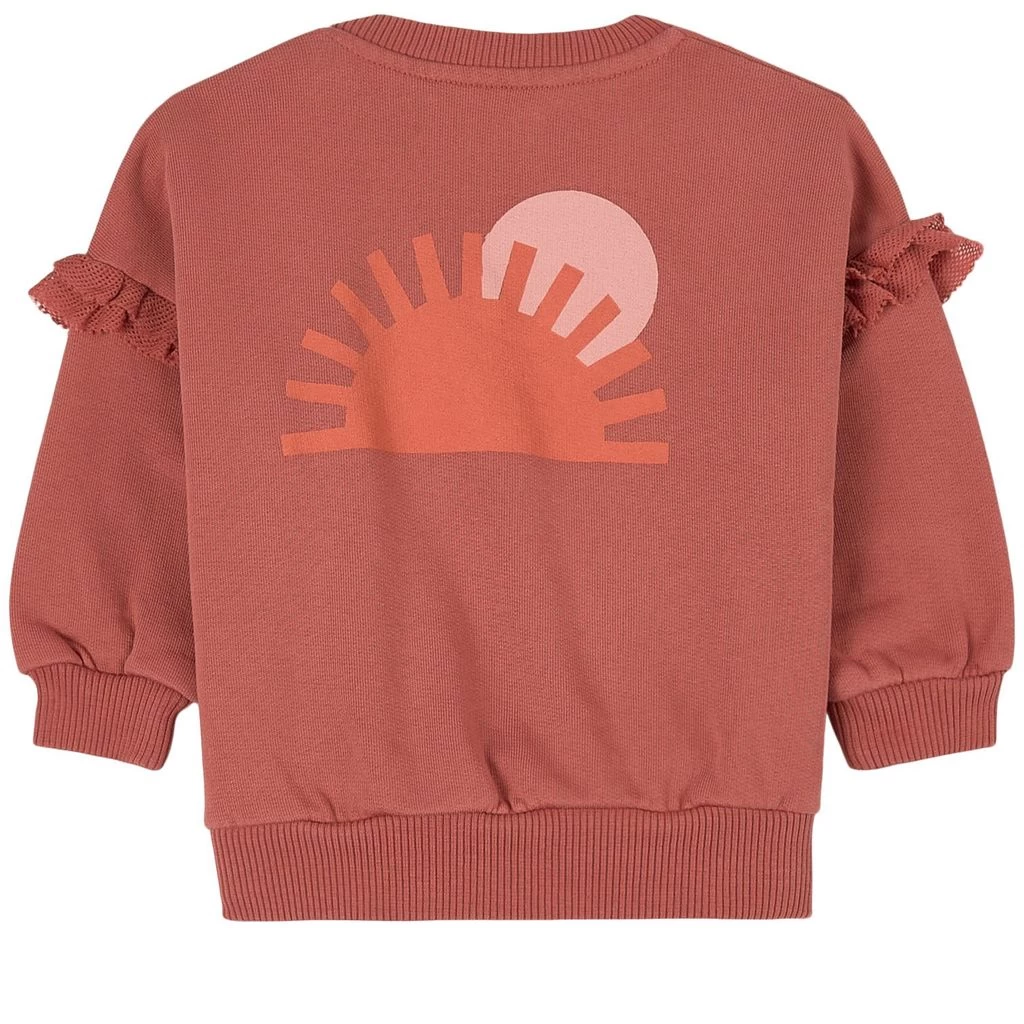 Fall in love with this sweater and your new style!. Pink jumper by Piupiuchick. The jumper is made in Portugal and has ribbed trims. It has frills at the shoulders, a wooden button closure at the shoulder, soft lining, a text print on the chest and a graphic at the back.