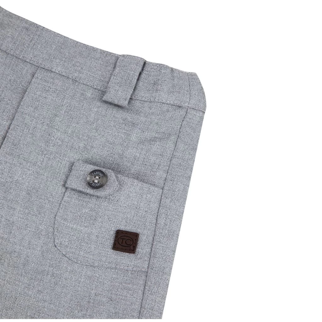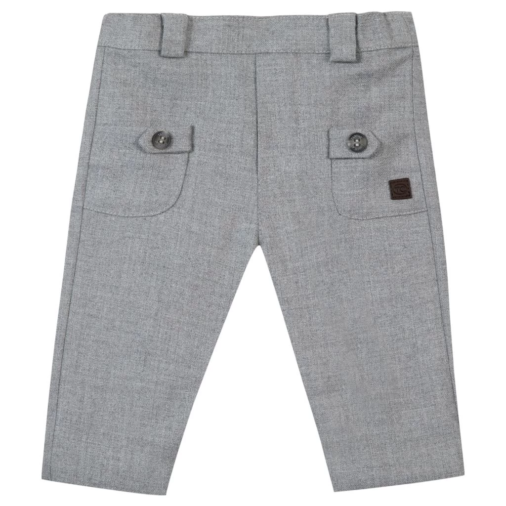 Keep little legs comfy. Grey trousers by Tartine et Chocolat. The trousers have an elasticated waist. They have two front pockets.
