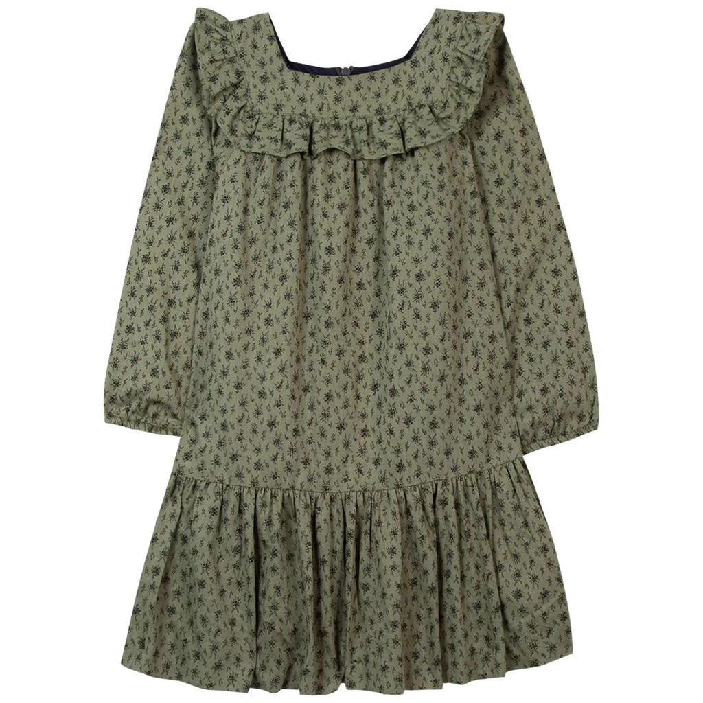 A dress that is chic and comfortable. A must have!. Green dress by Tartine et Chocolat. The dress has soft lining. It has a zip closure at the back and a dropped waist.