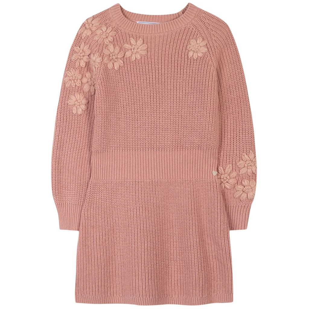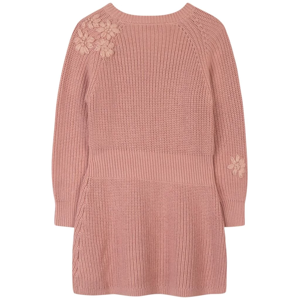 A dress for every occasion. Grey dress by Tartine et Chocolat. The dress has a knitted design. It has a rib-knit waist, rib-knit cuffs and embroidered flowers.