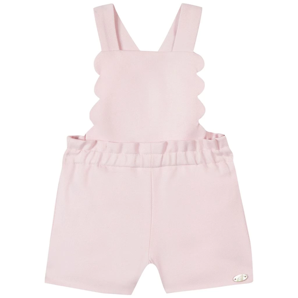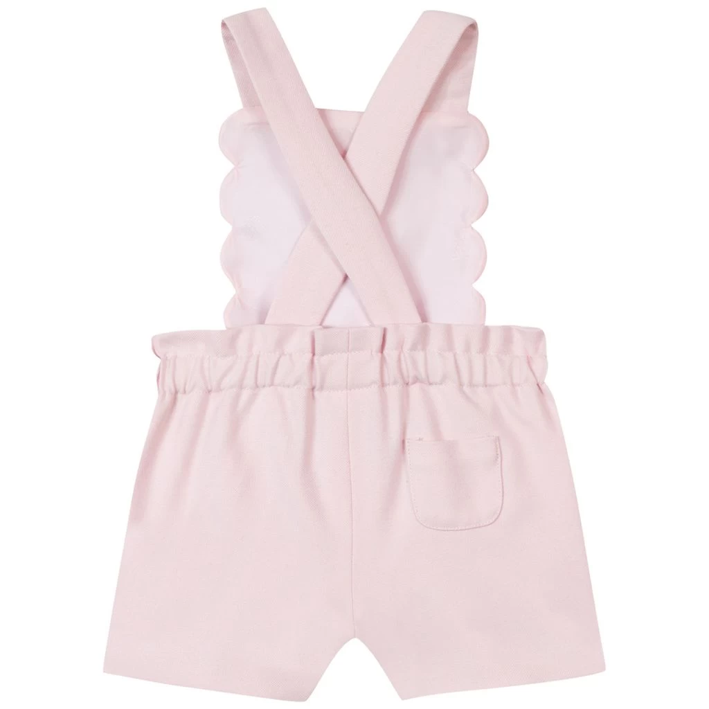 Let your baby explore and play in comfort. Pink overalls by Tartine et Chocolat. The overalls have soft lining. They have criss crossed shoulder straps, an elasticated waist and a back pocket.