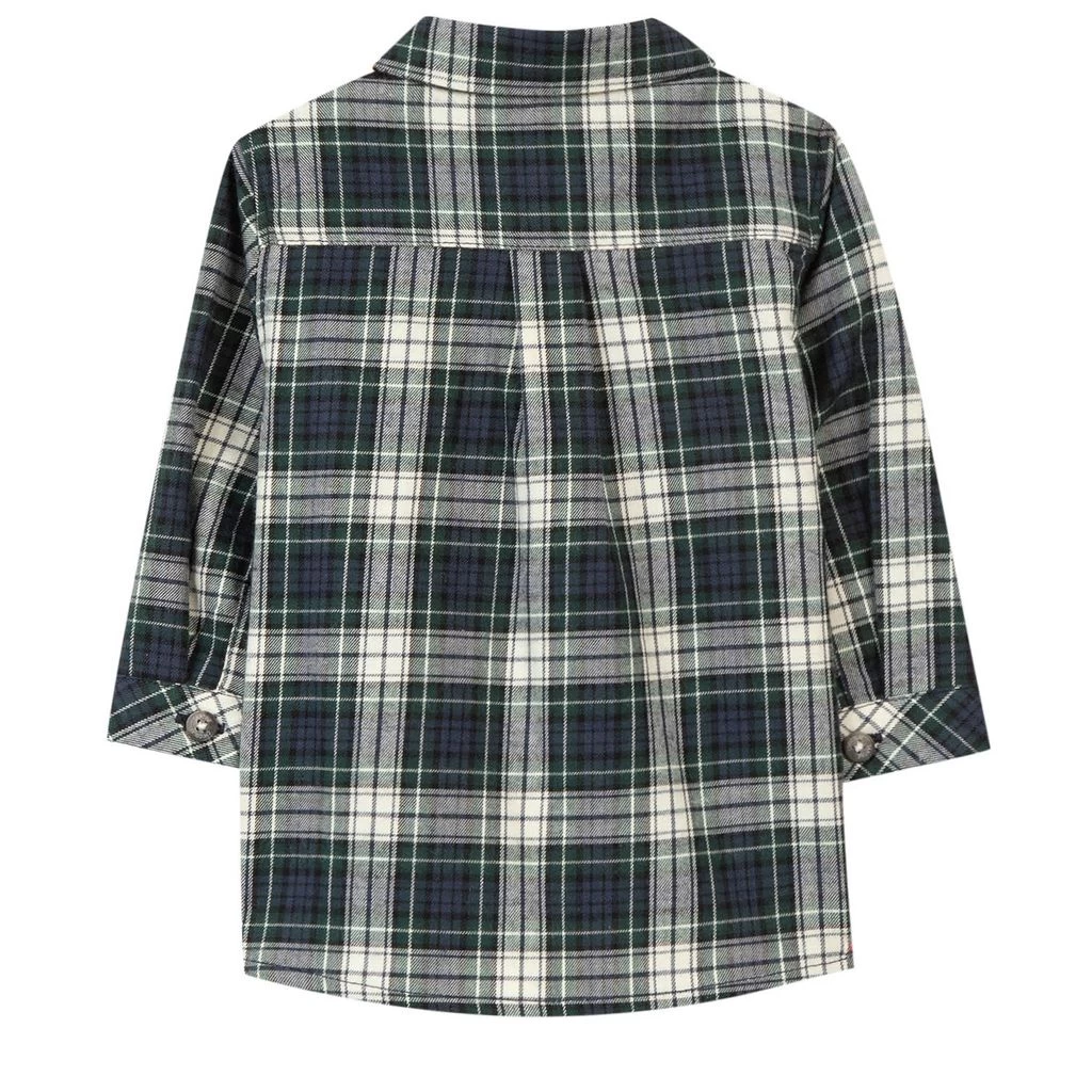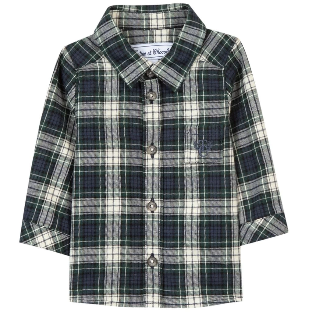 A shirt to make your day. Navy shirt by Tartine et Chocolat. The shirt has a regular fit. It has a classic collar, a button closure at the front and a chest pocket with an embroidered logo.