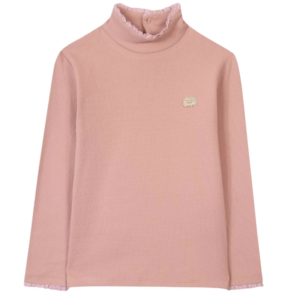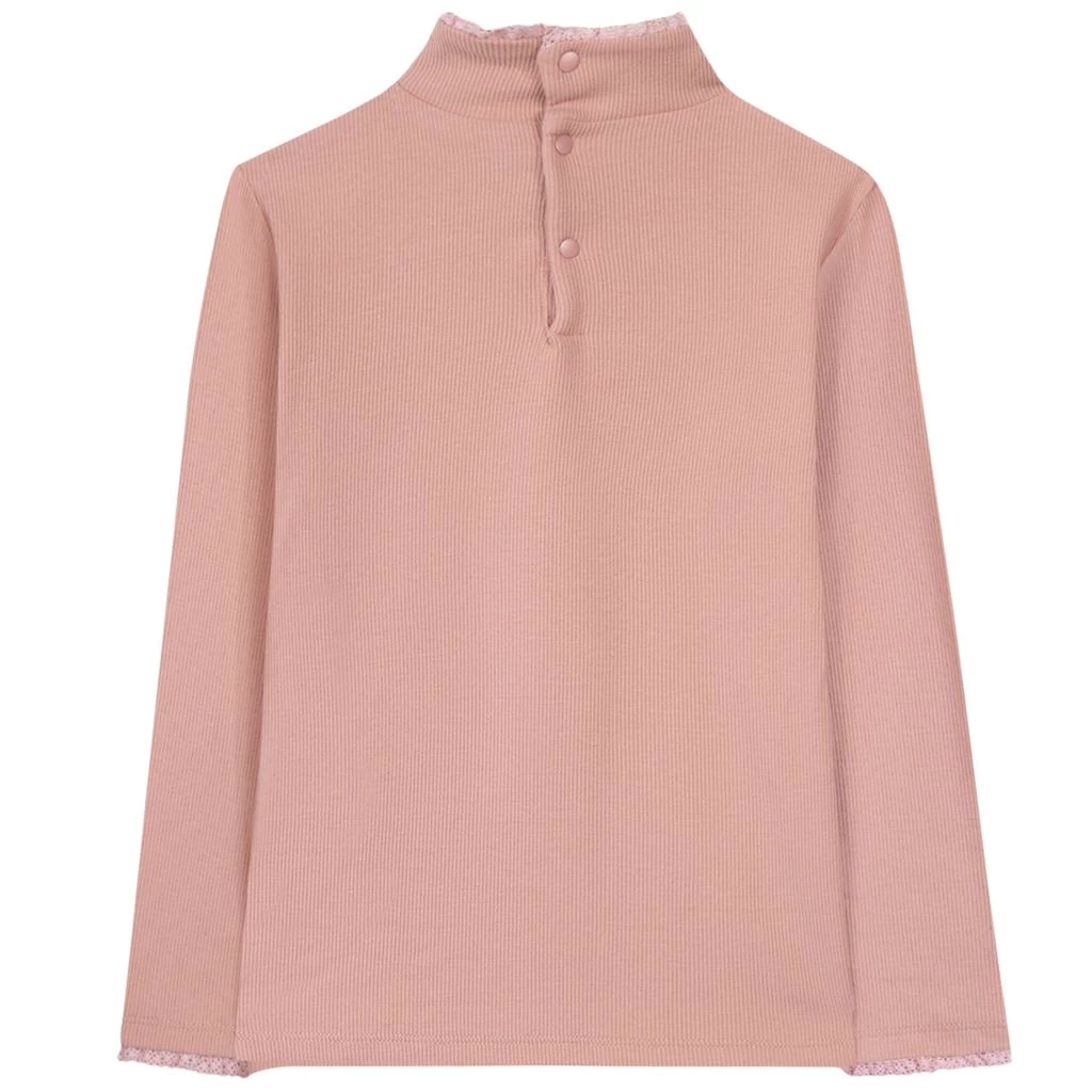 A top that goes well with everything!. Pink top by Tartine et Chocolat. The top has a ribbed design. It has a regular fit, a high neck with a lace trim and snap buttons at the back.